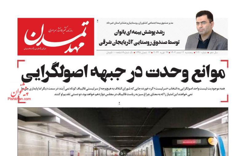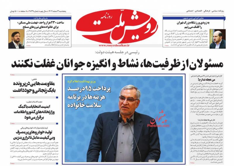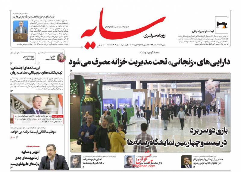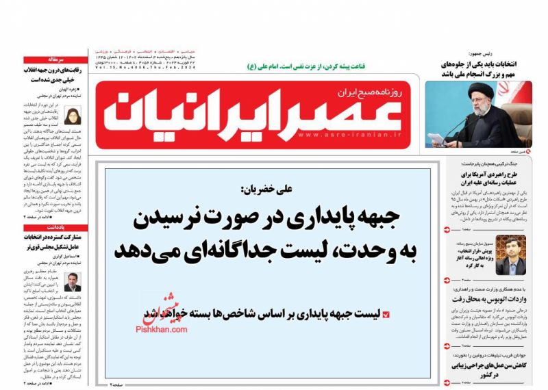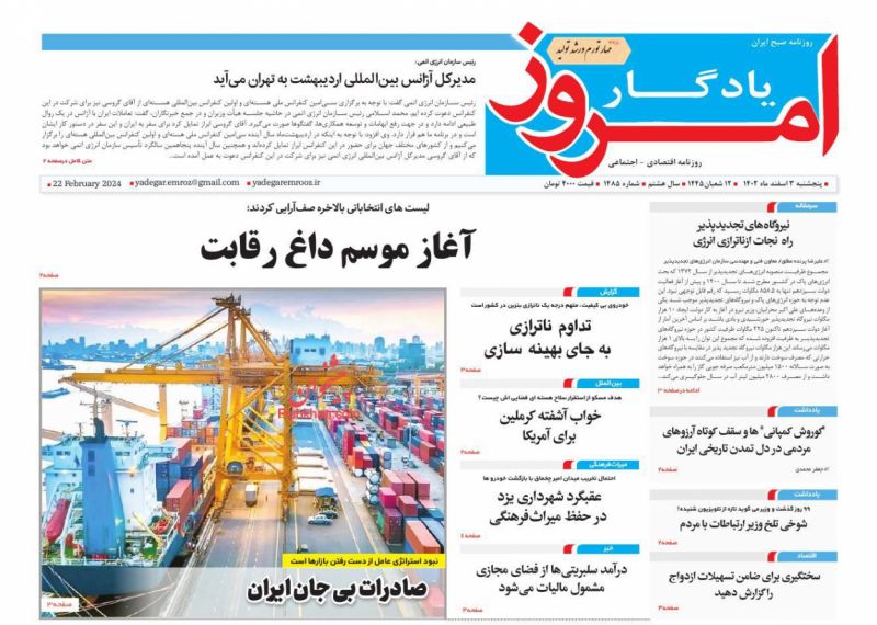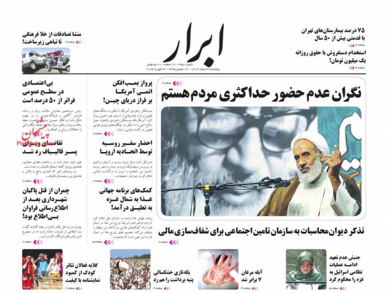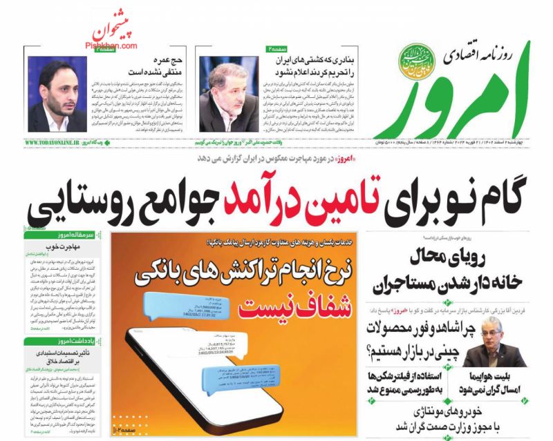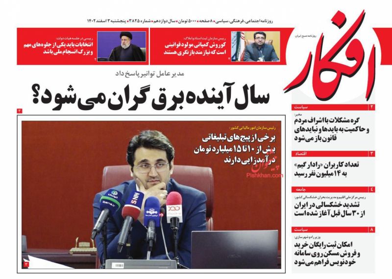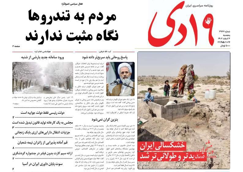 عصر ایرانیان ، پنجشنبه ۳ اسفند