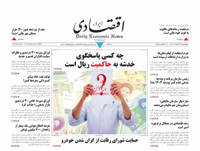 جهان اقتصاد ، پنجشنبه ۳ اسفند