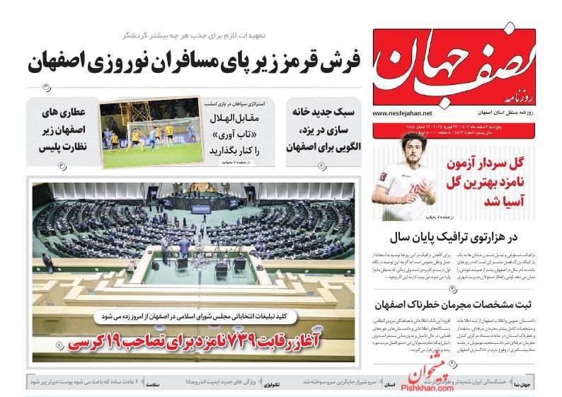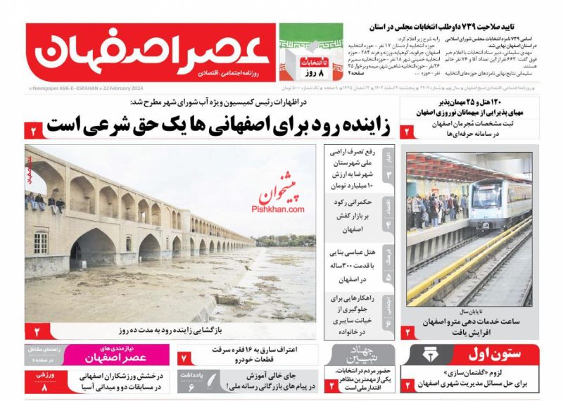 عصر اصفهان ، پنجشنبه ۳ اسفند