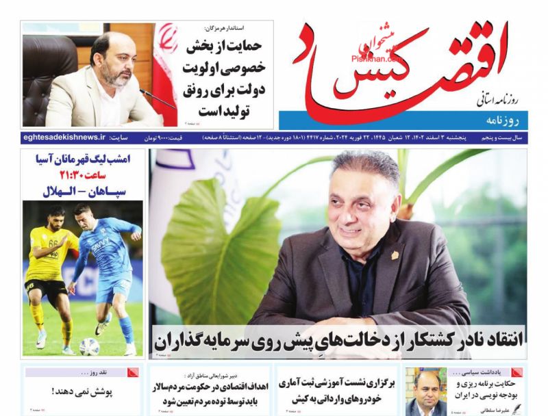 اقتصاد ملی ، پنجشنبه ۳ اسفند