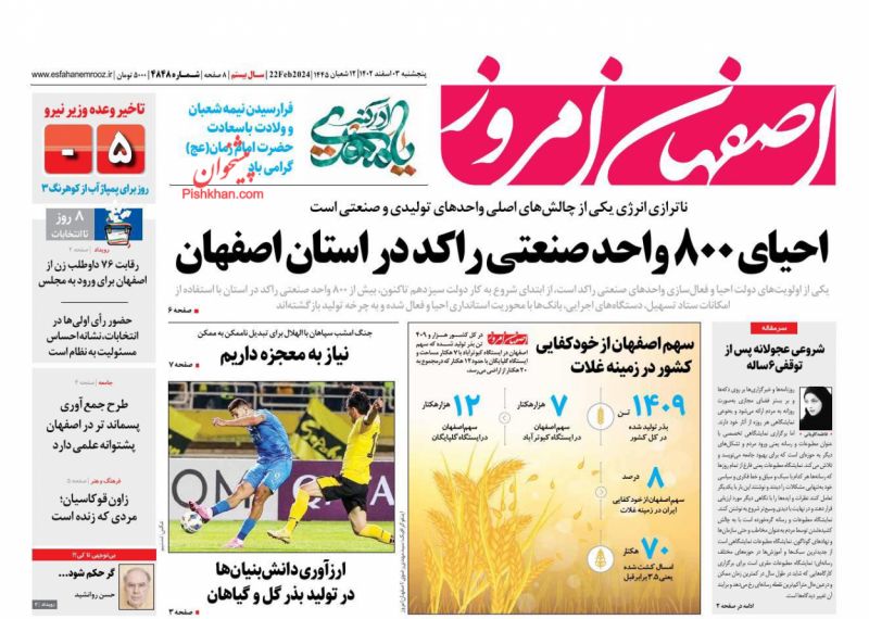 اصفهان امروز ، پنجشنبه ۳ اسفند