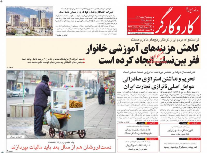کار و کارگر ، پنجشنبه ۳ اسفند