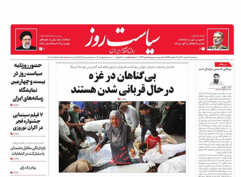 جمهوری اسلامی ، پنجشنبه ۳ اسفند