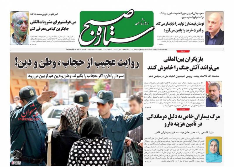جمهوری اسلامی ، پنجشنبه ۲۰ ارديبهشت
