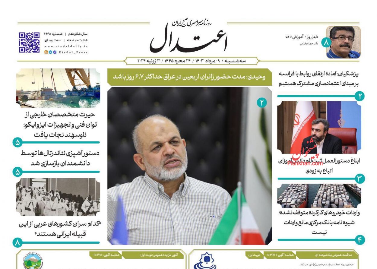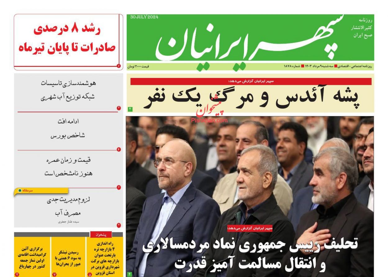 جمهوری اسلامی ، سهشنبه ۹ مرداد