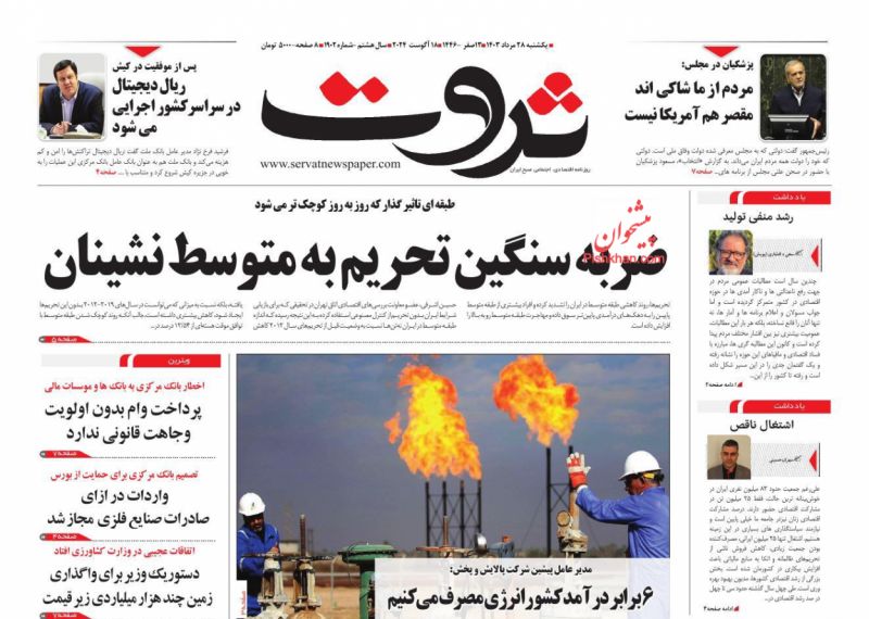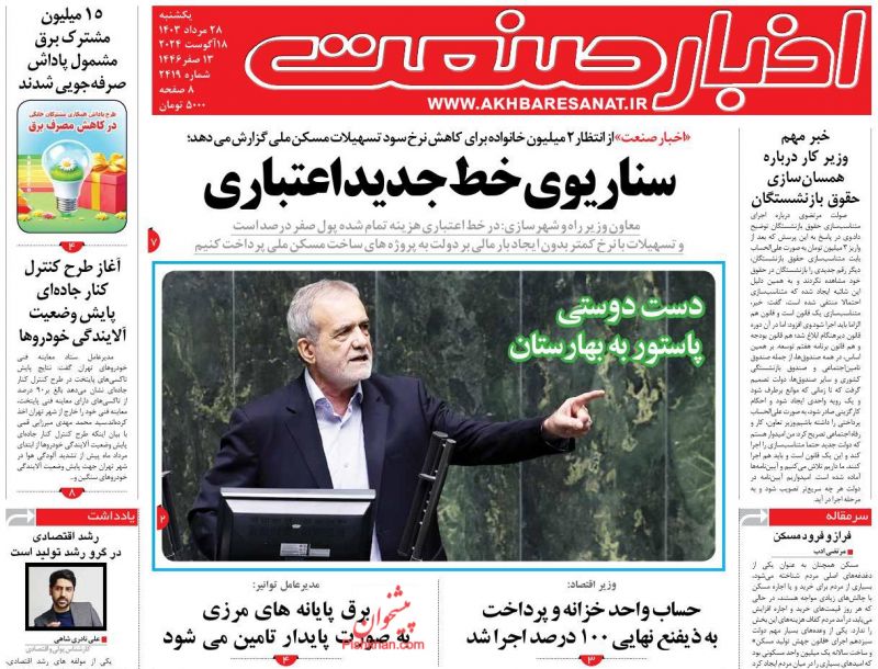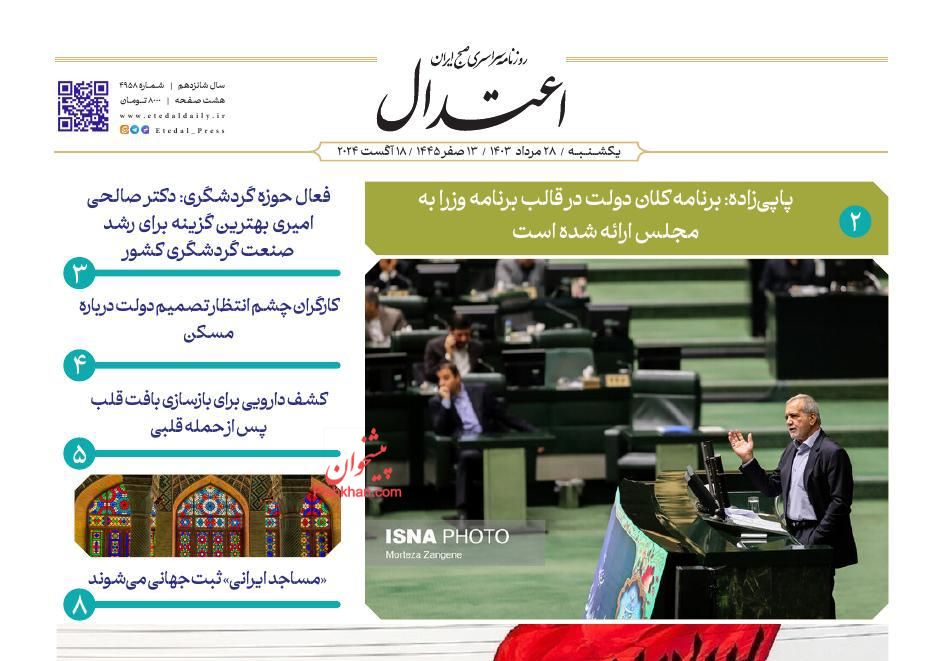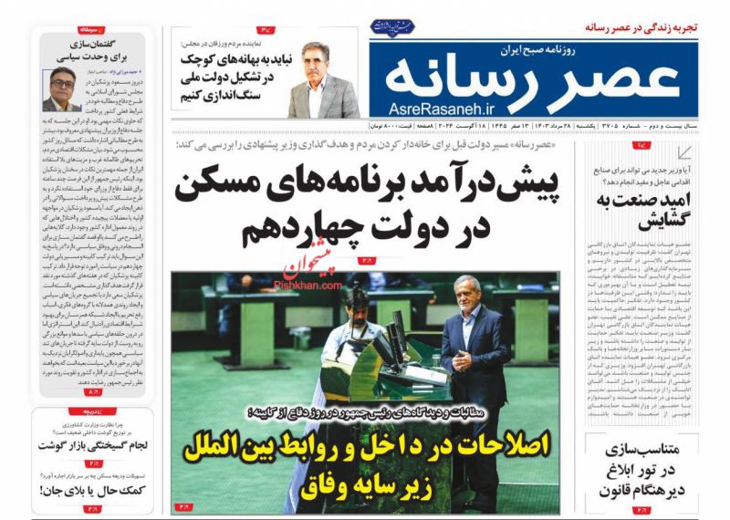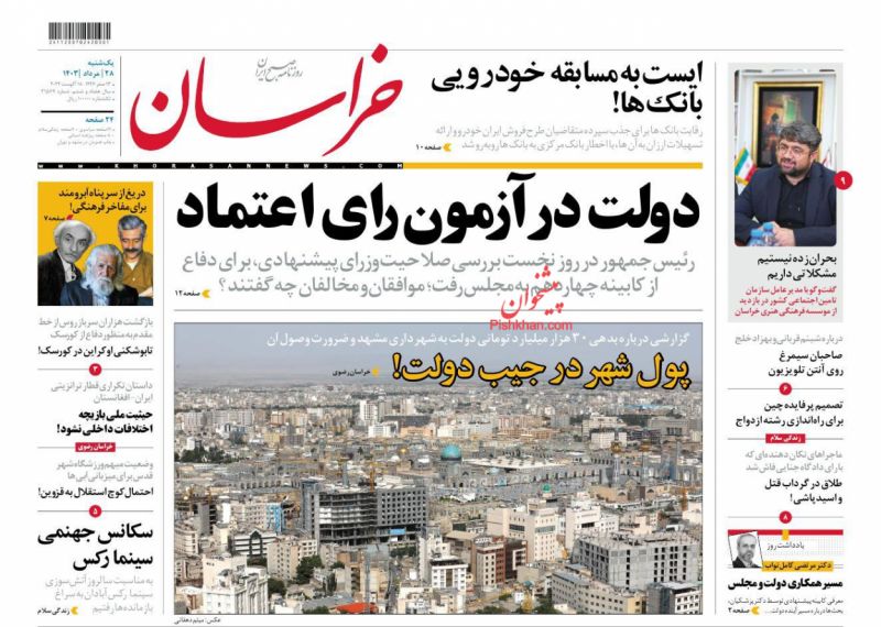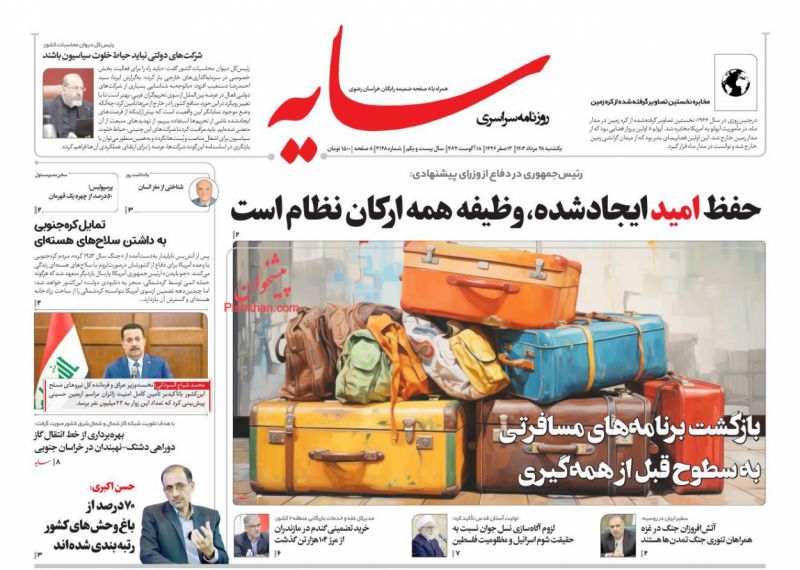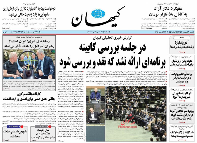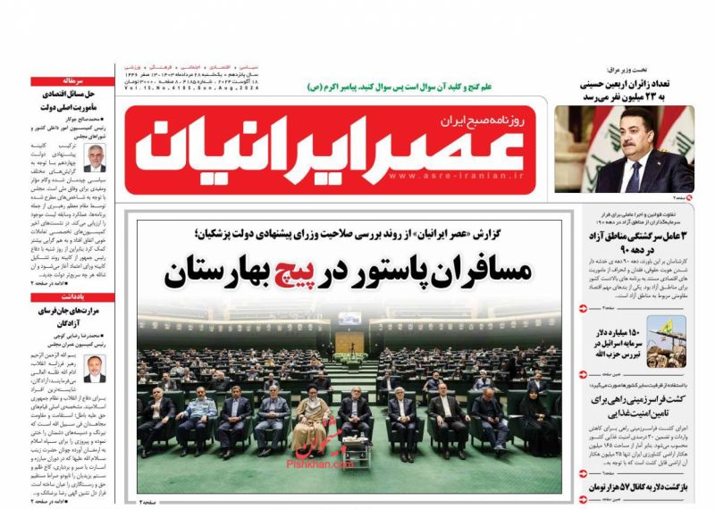 عصر ایرانیان ، یکشنبه ۲۸ مرداد