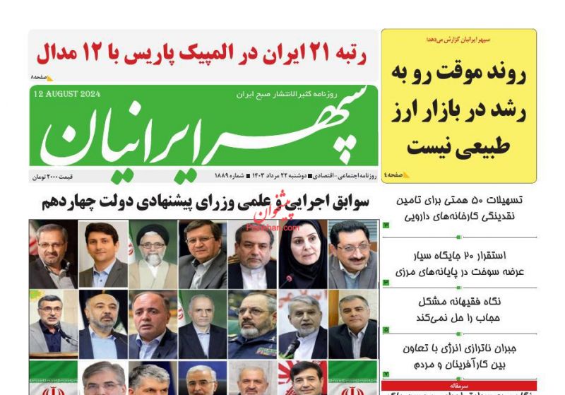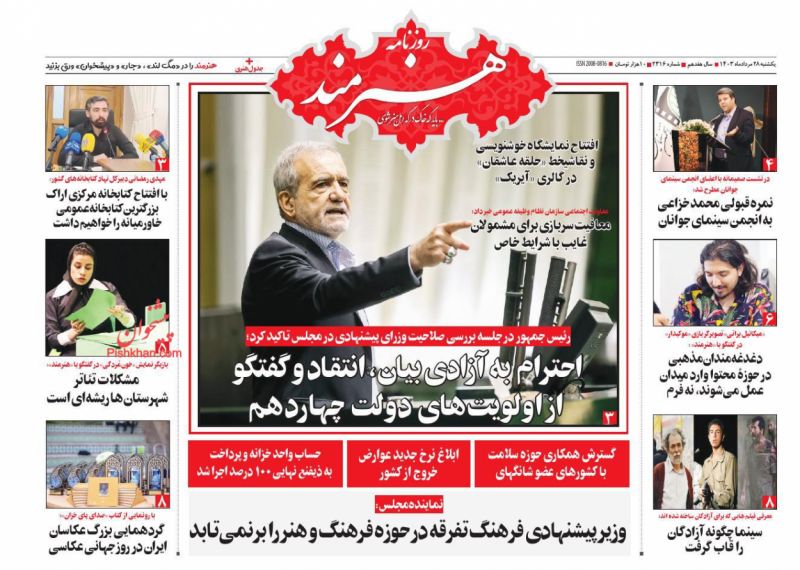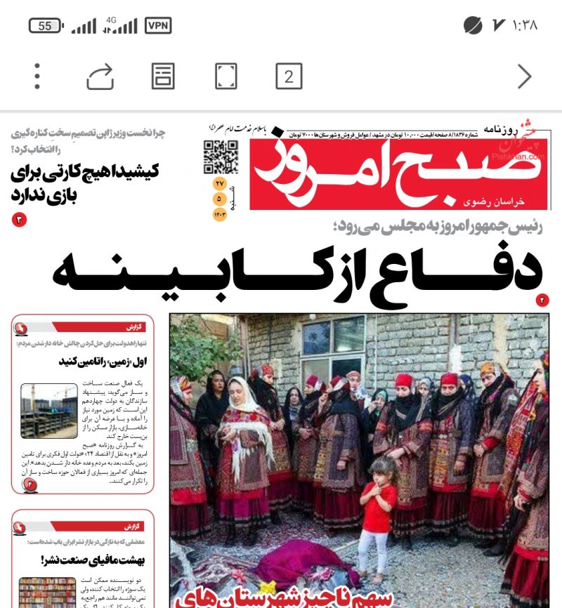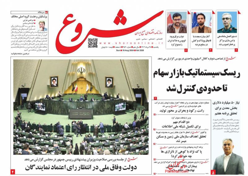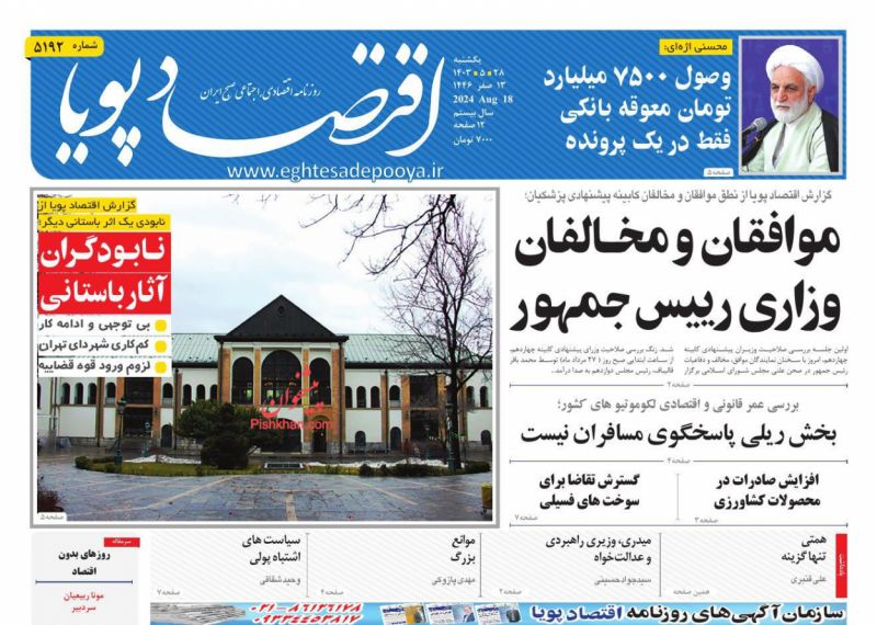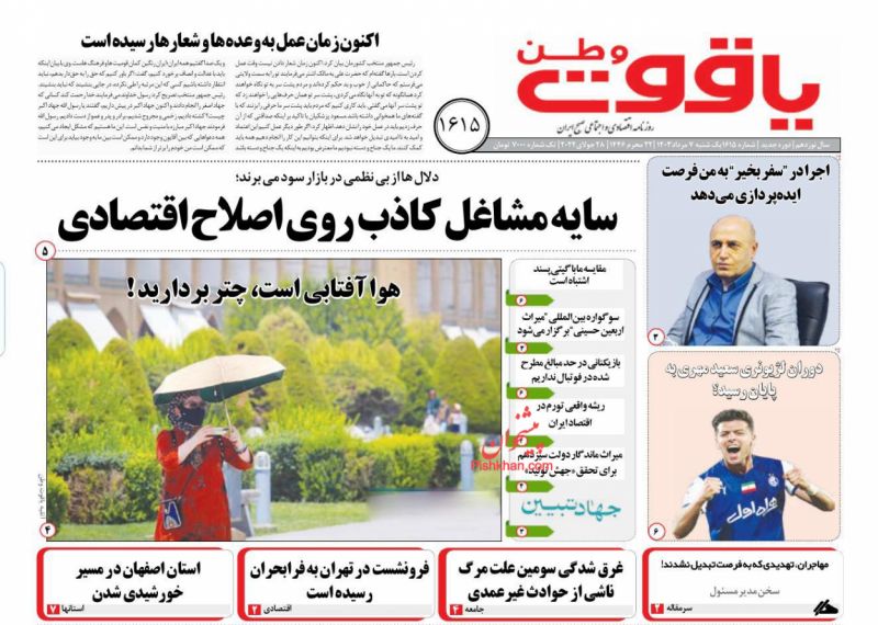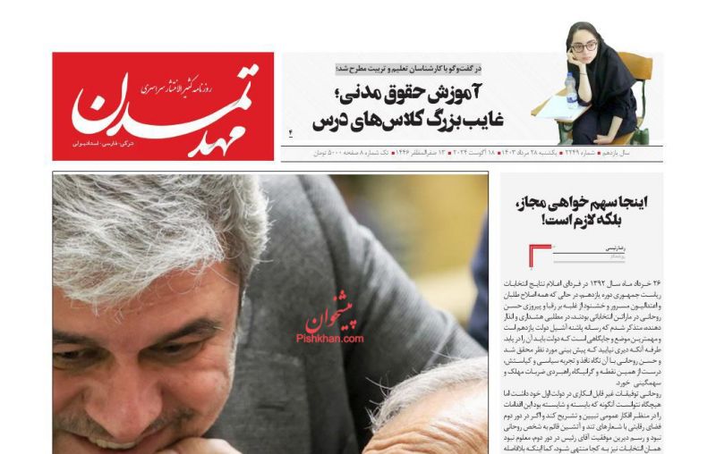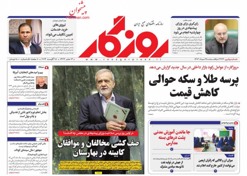 عصر ایرانیان ، یکشنبه ۲۸ مرداد
