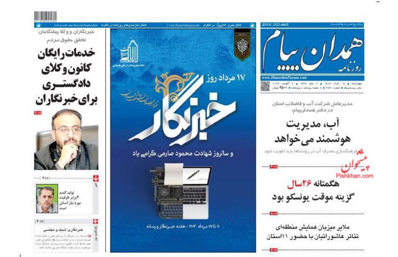 همدان پیام ، چهارشنبه ۱۷ مرداد