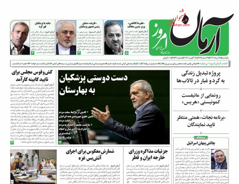 آرمان امروز ، یکشنبه ۲۸ مرداد