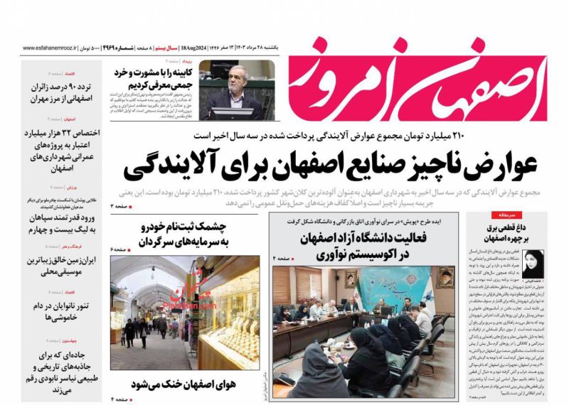 اصفهان امروز ، یکشنبه ۲۸ مرداد
