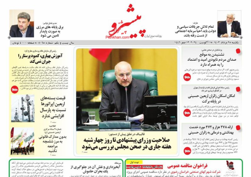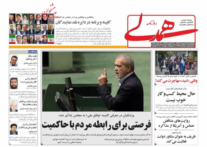 جمهوری اسلامی ، یکشنبه ۲۸ مرداد