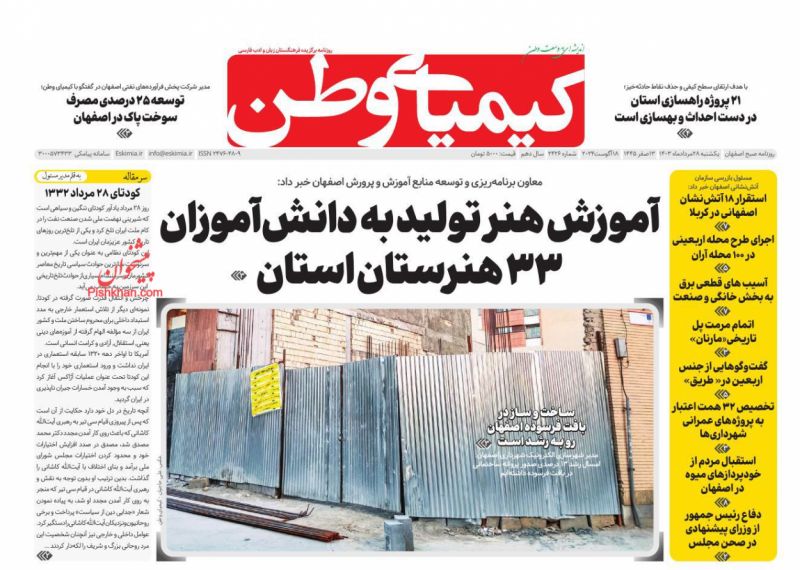 عصر اصفهان ، یکشنبه ۷ مرداد