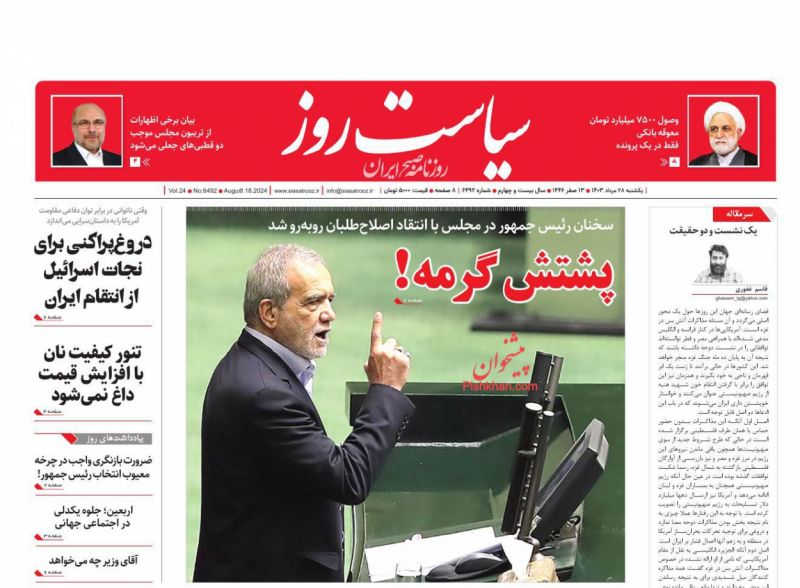سیاست روز ، یکشنبه ۲۸ مرداد