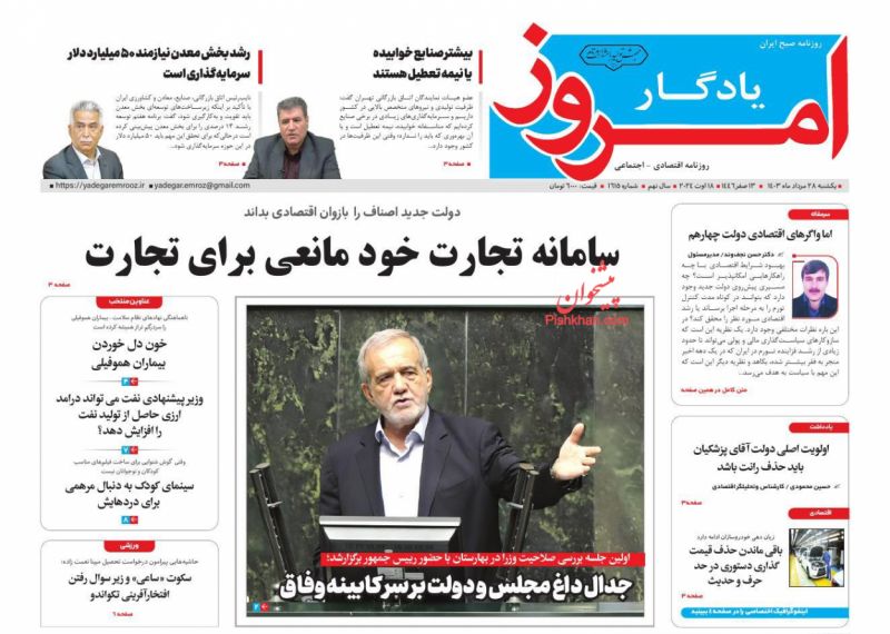 اقتصاد ملی ، یکشنبه ۲۸ مرداد