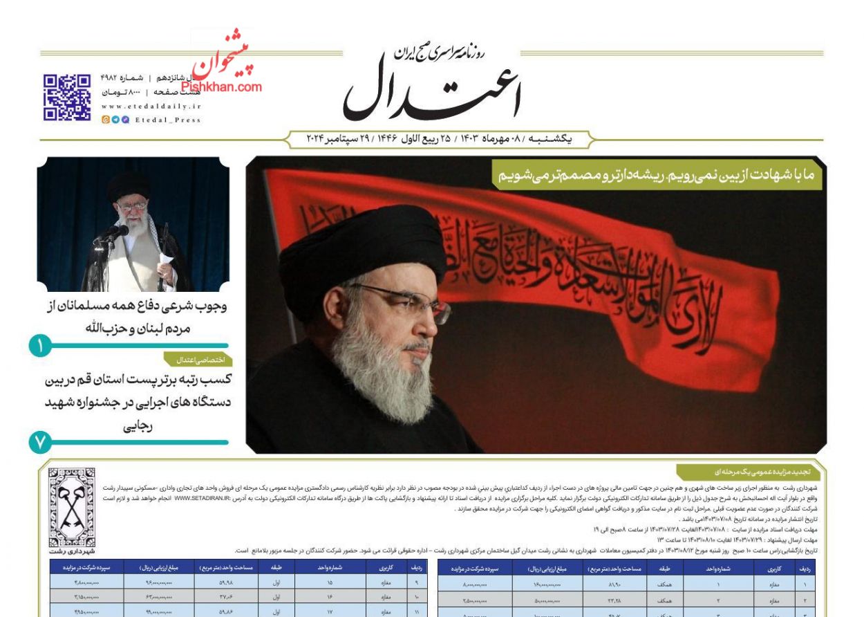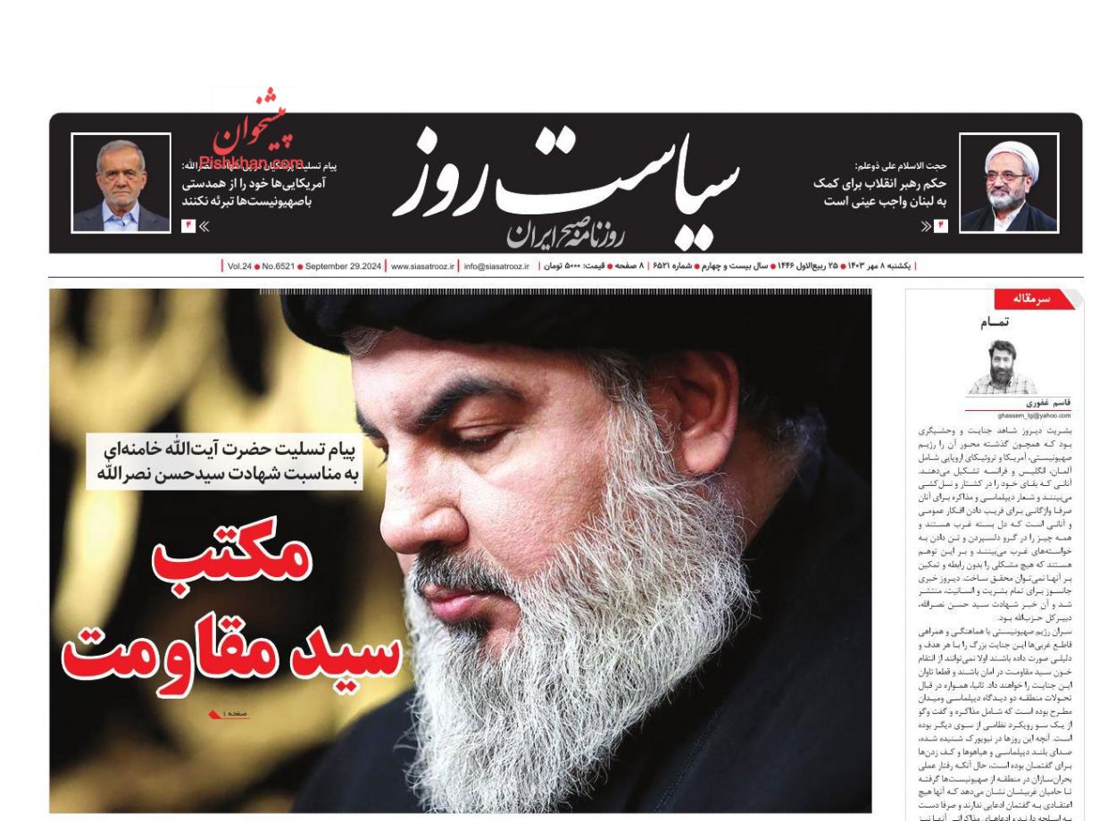 جمهوری اسلامی ، یکشنبه ۸ مهر
