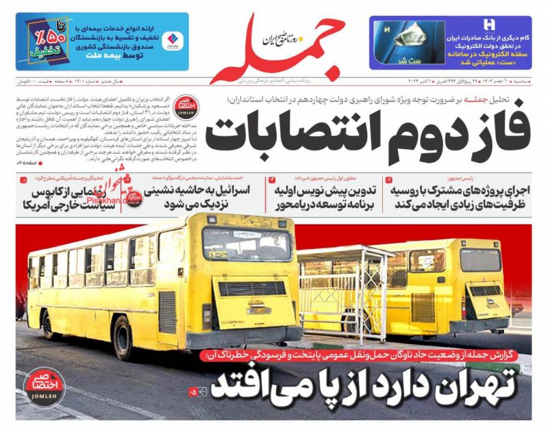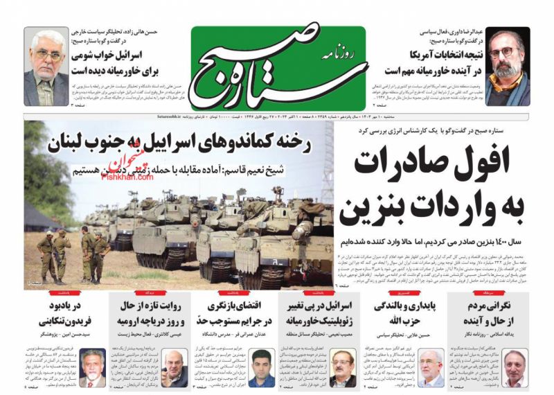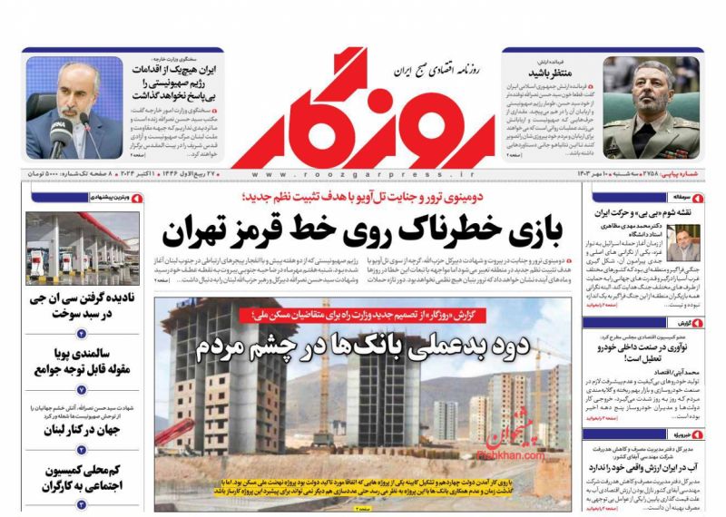 جمهوری اسلامی ، سهشنبه ۱۰ مهر