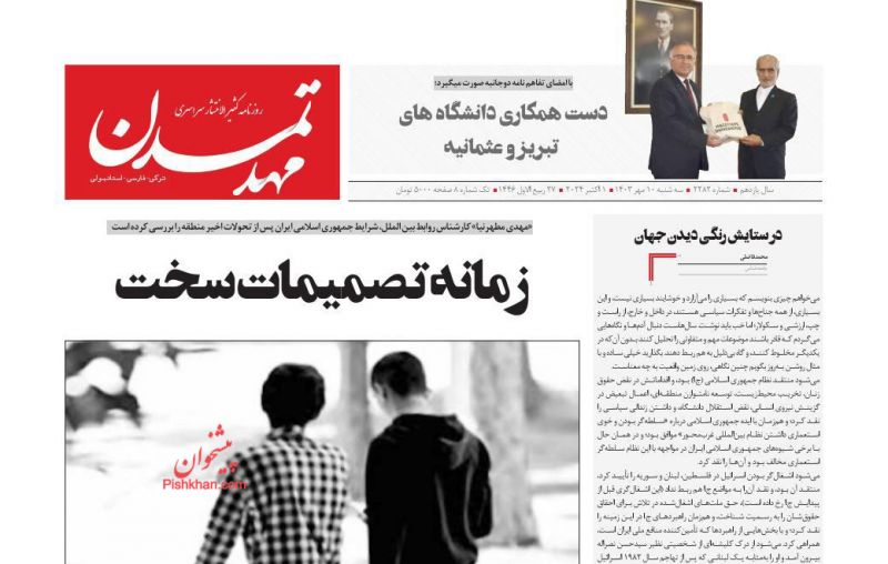 عصر ایرانیان ، سهشنبه ۱۰ مهر