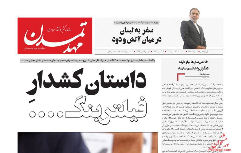 عصر ایرانیان ، یکشنبه ۱۵ مهر