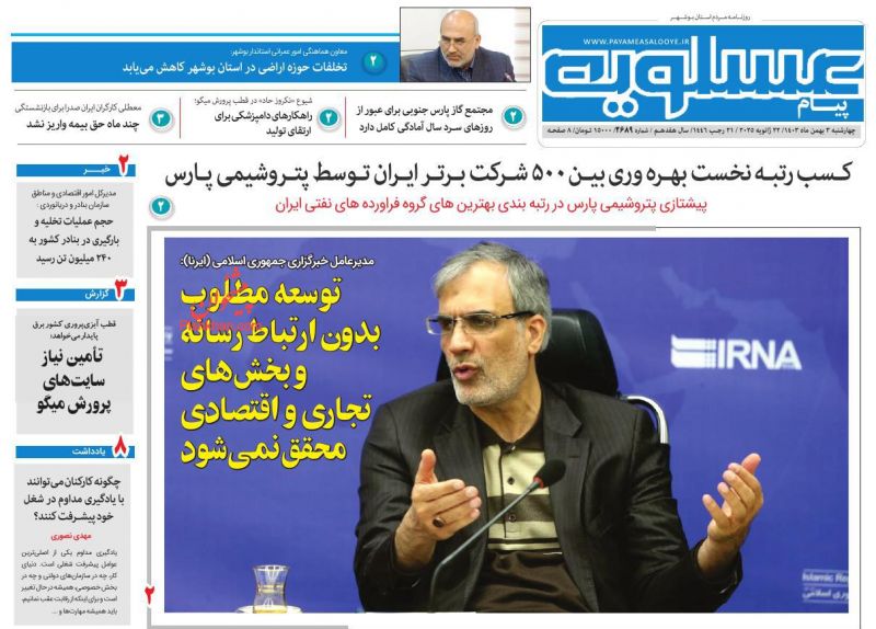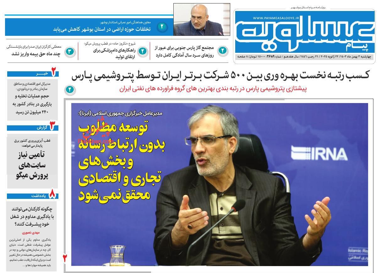 پیام عسلویه ، چهارشنبه ۳ بهمن