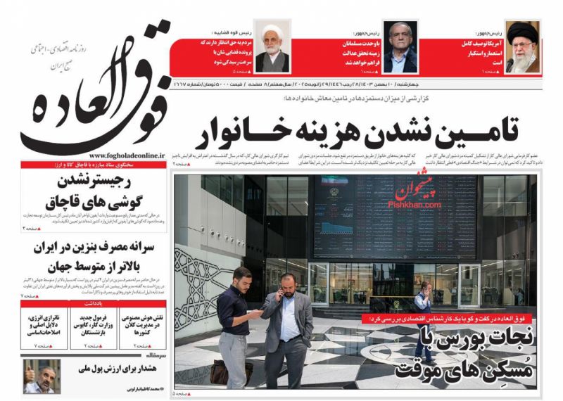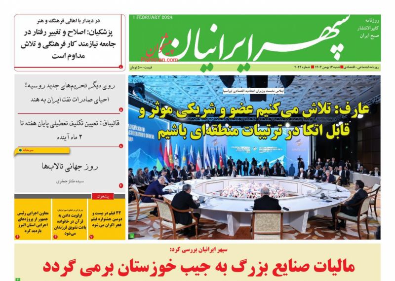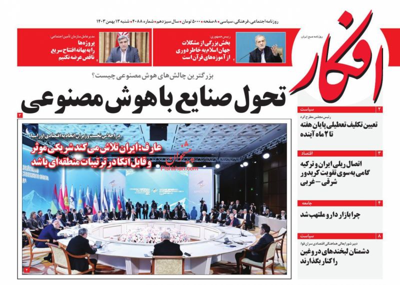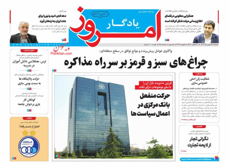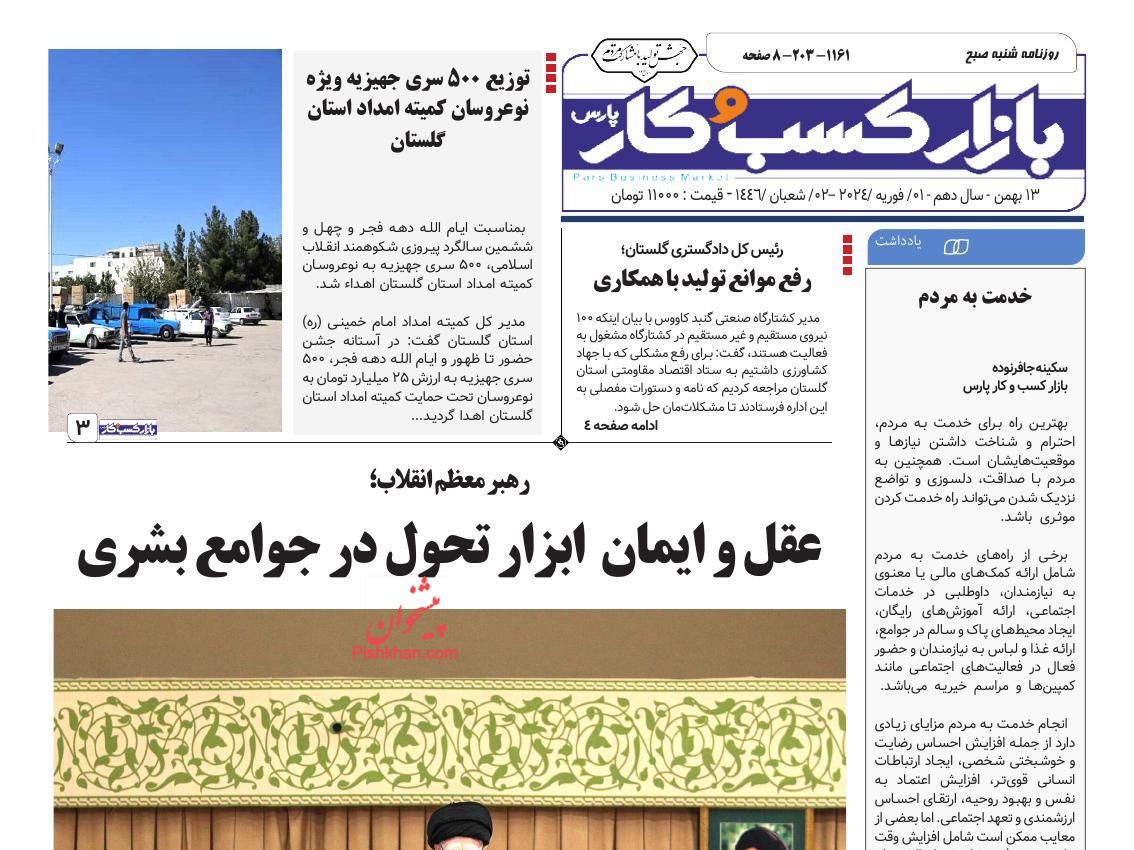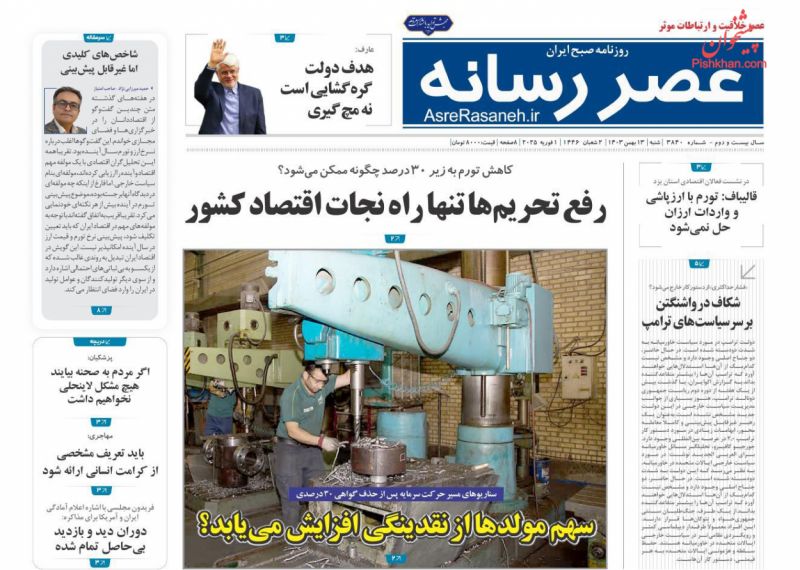 ابرار اقتصادی ، شنبه ۱۳ بهمن