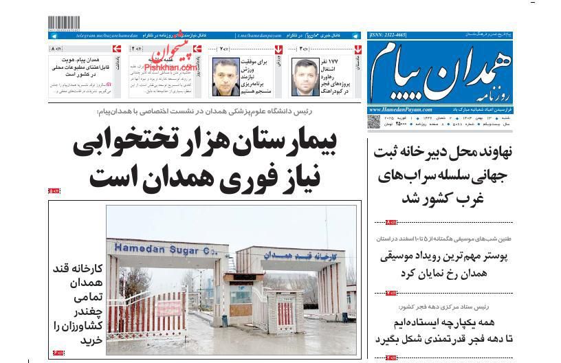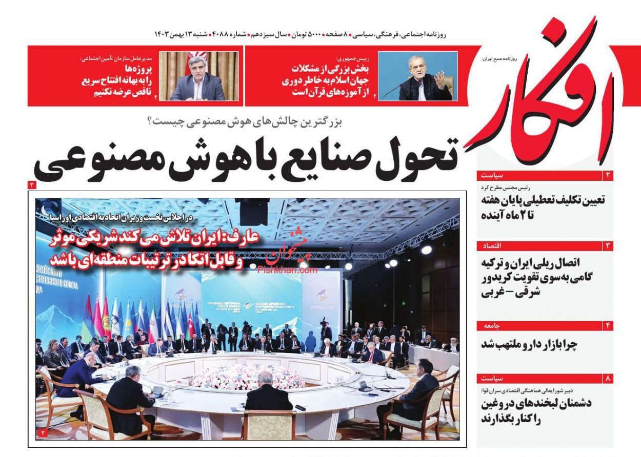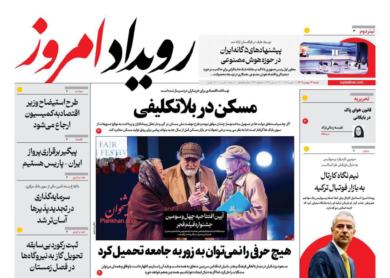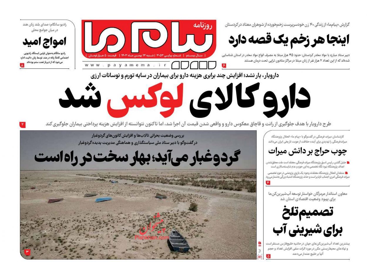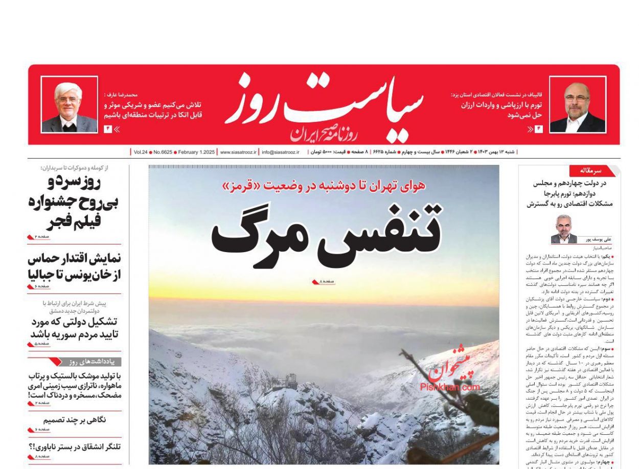 عصر ایرانیان ، شنبه ۱۳ بهمن