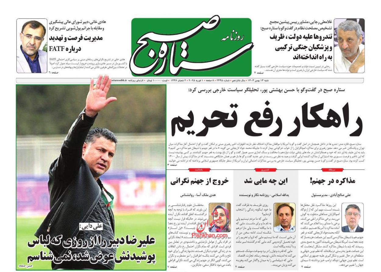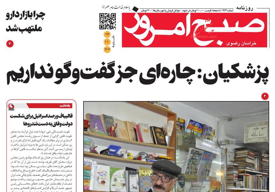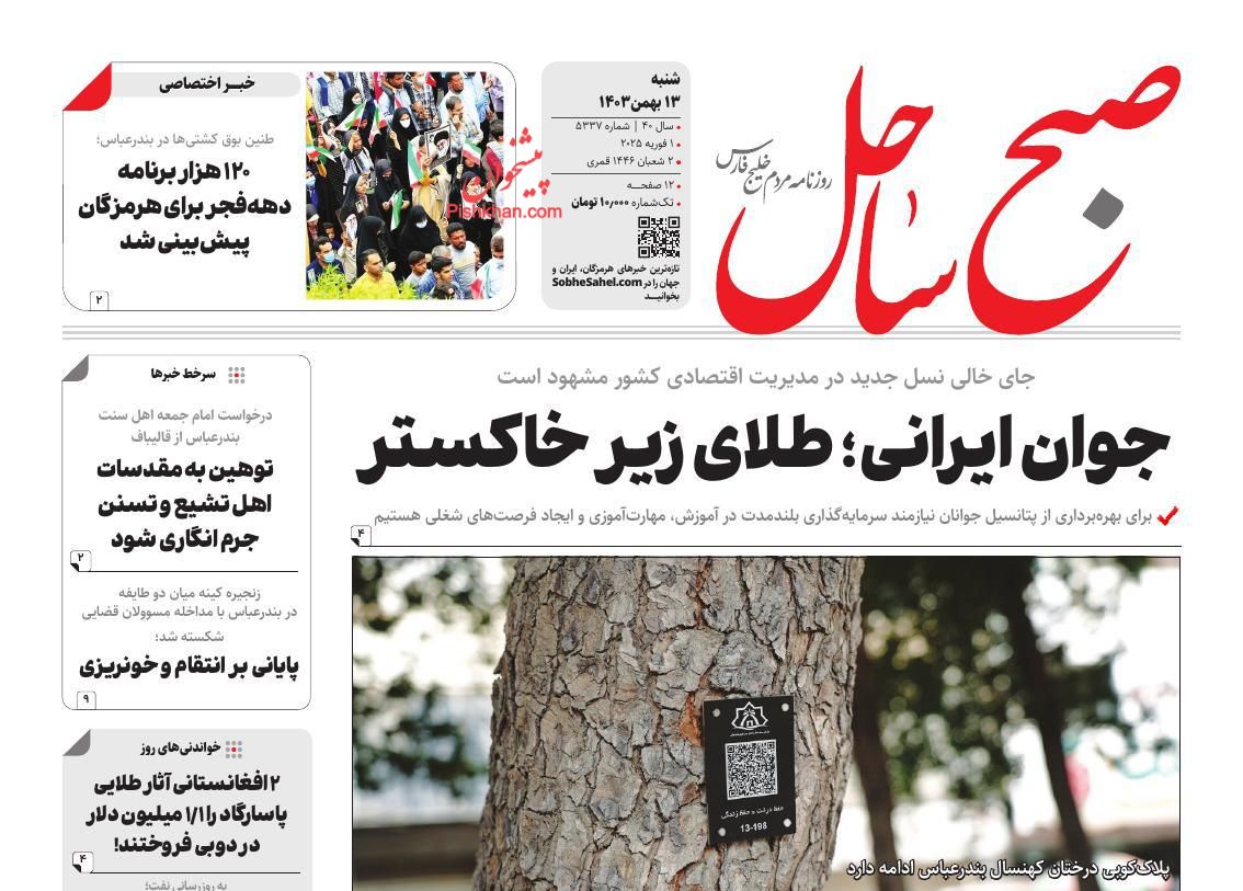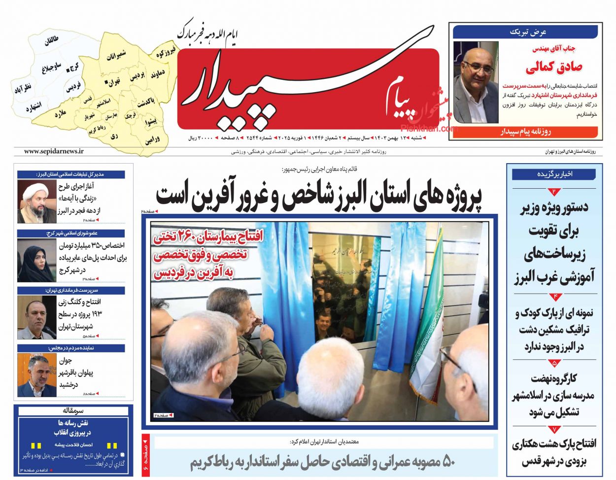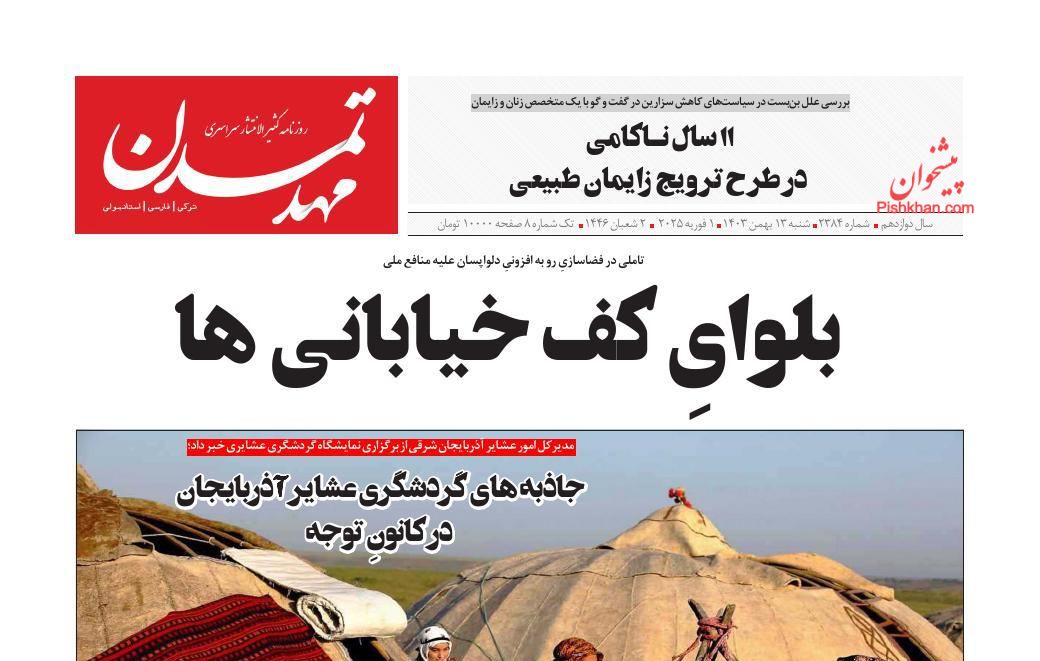 عصر ایرانیان ، شنبه ۱۳ بهمن