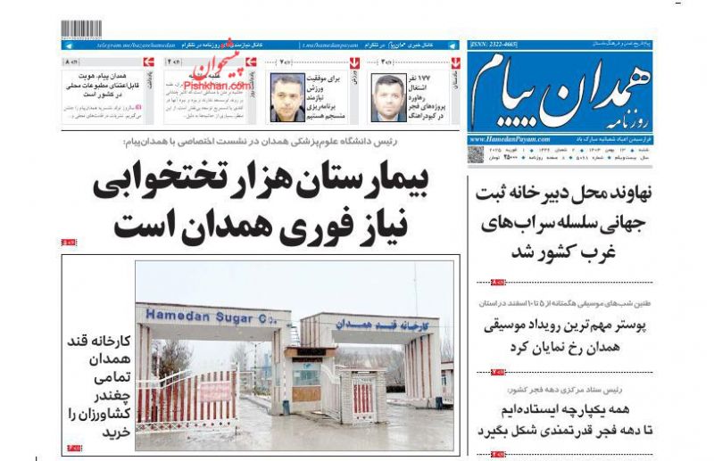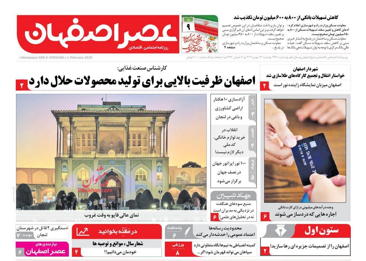 عصر اصفهان ، شنبه ۱۳ بهمن