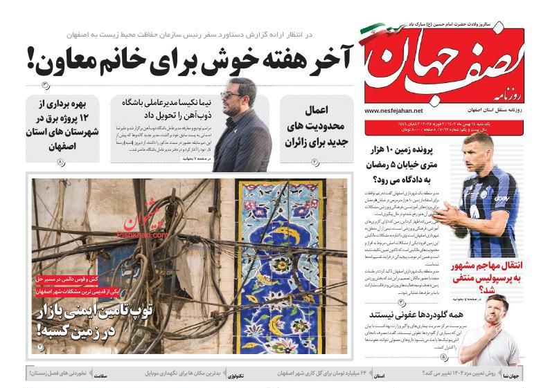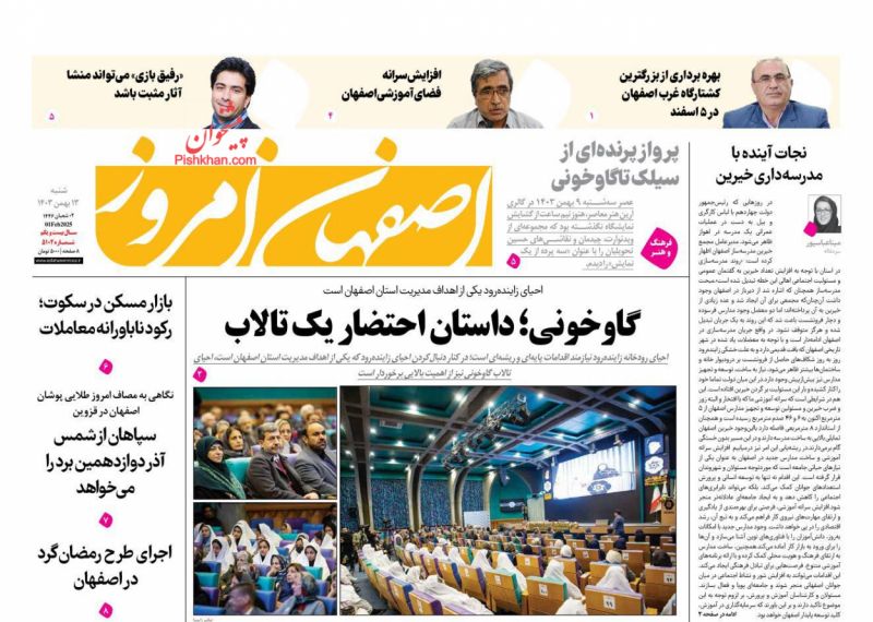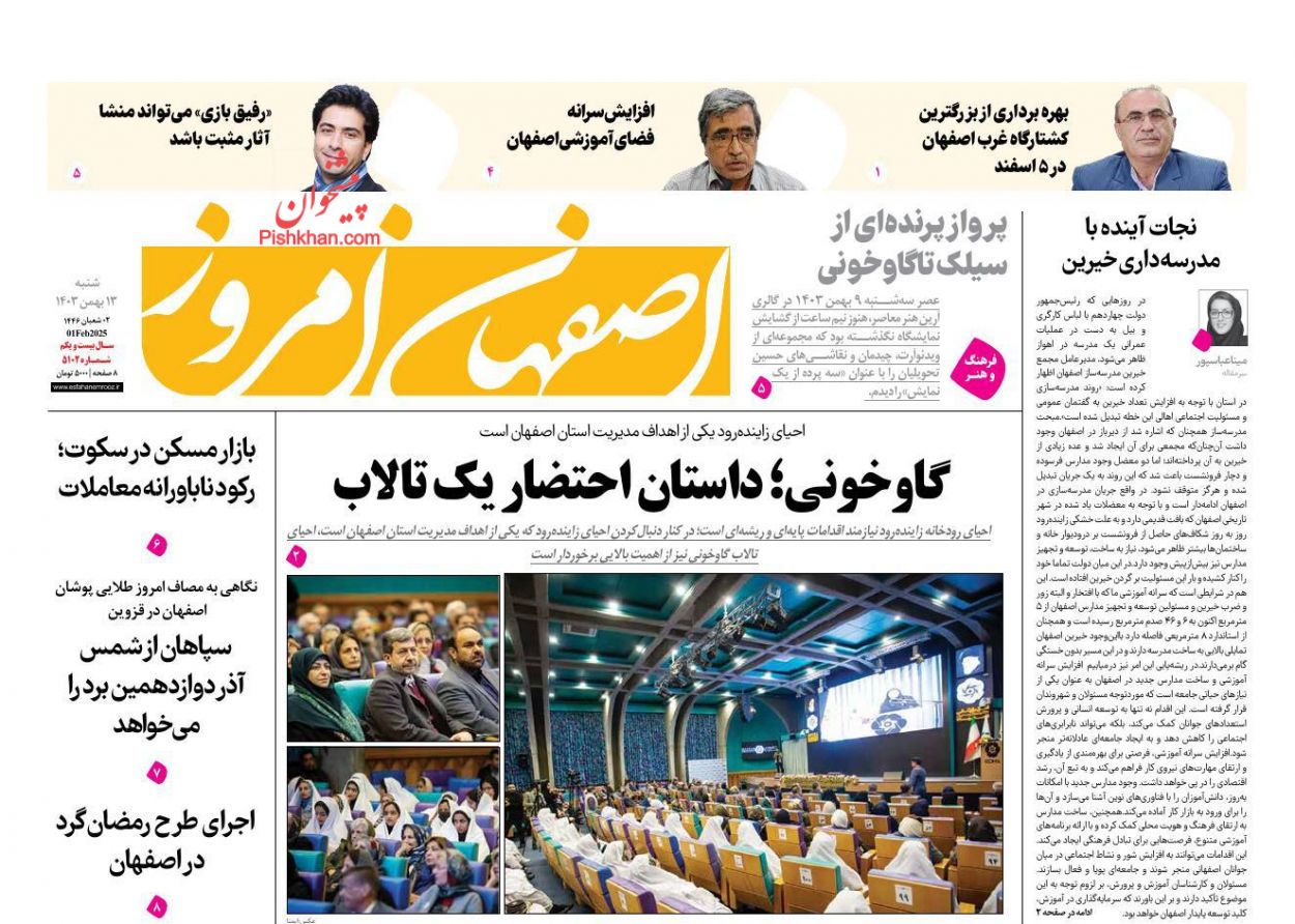 اصفهان امروز ، شنبه ۱۳ بهمن