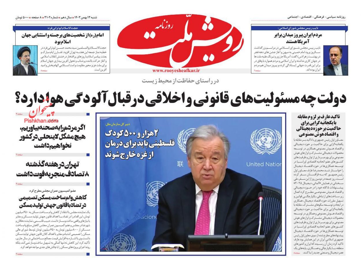 جمهوری اسلامی ، شنبه ۱۳ بهمن