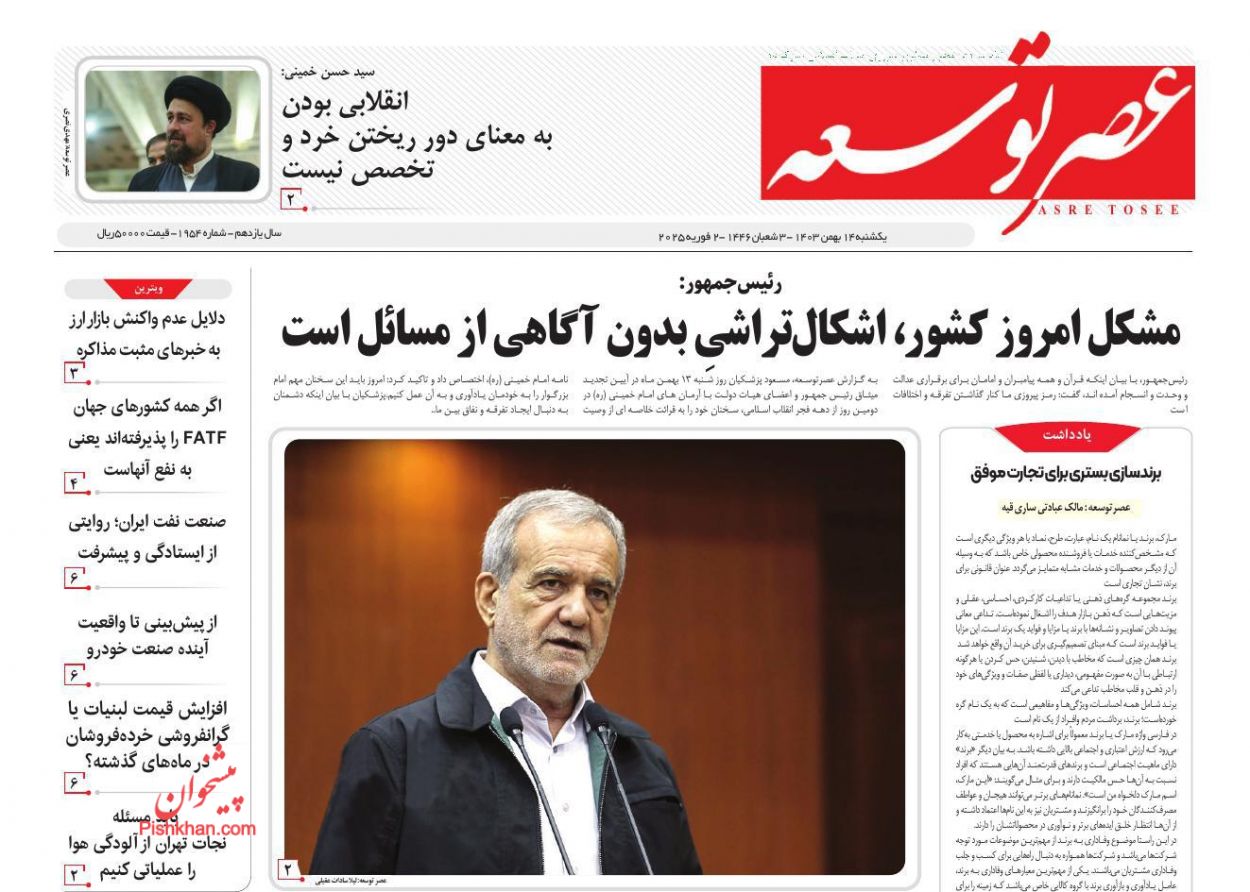 عصر توسعه ، یکشنبه ۱۴ بهمن