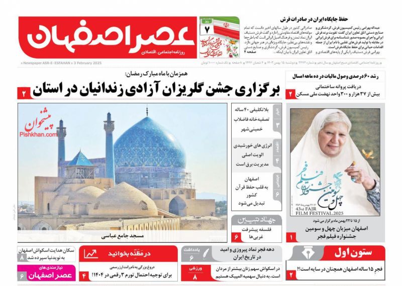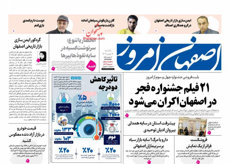اصفهان امروز ، یکشنبه ۱۴ بهمن
