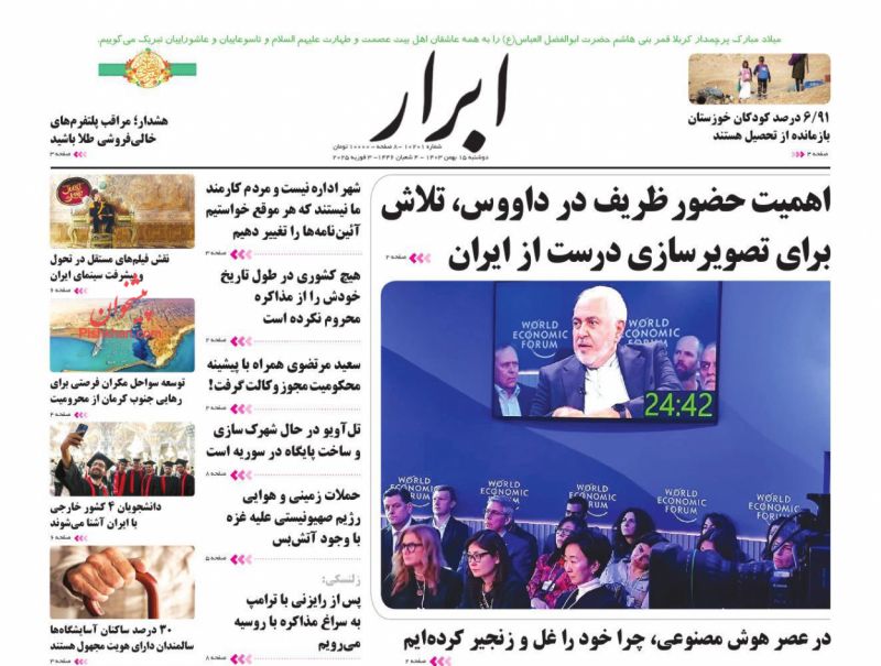 ابرار ، دوشنبه ۱۵ بهمن