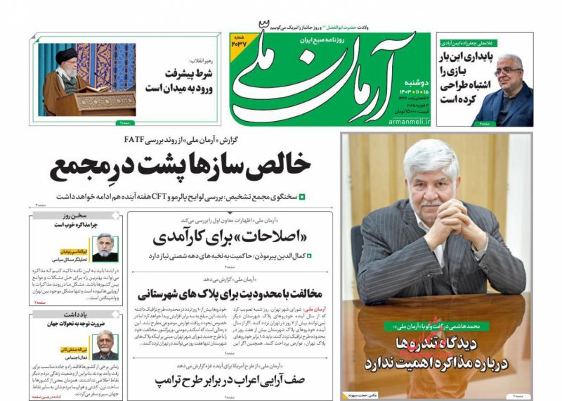 آرمان ملی ، دوشنبه ۱۵ بهمن