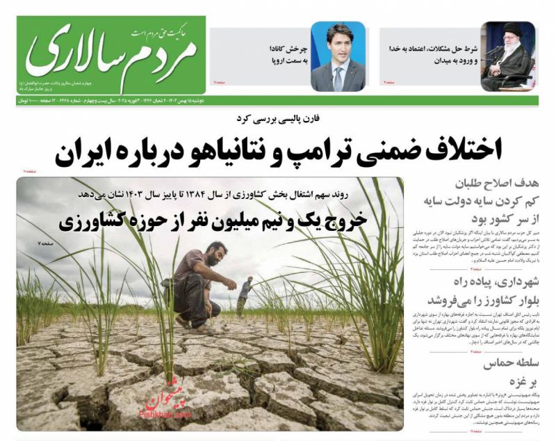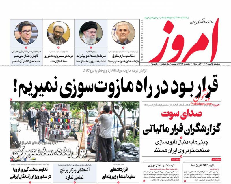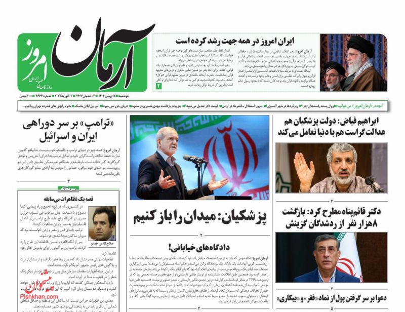آرمان امروز ، دوشنبه ۱۵ بهمن