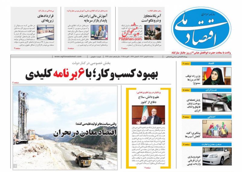 اقتصاد ملی ، دوشنبه ۱۵ بهمن