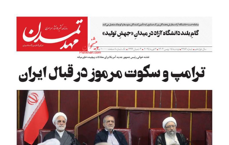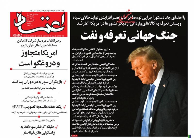 اعتماد ، دوشنبه ۱۵ بهمن