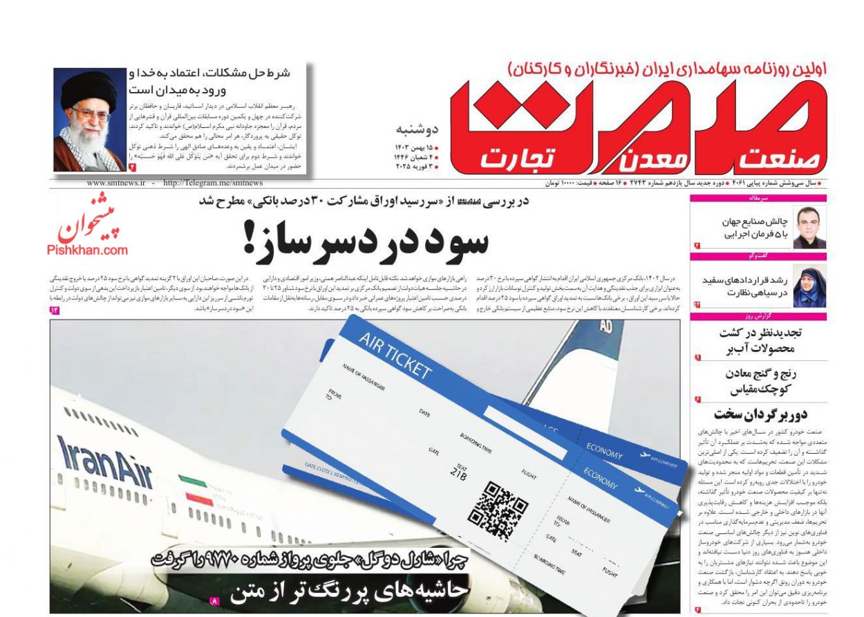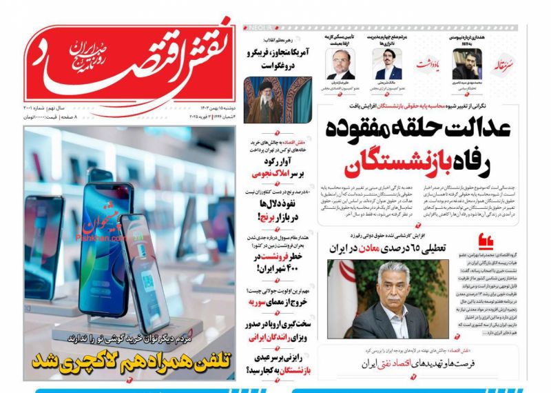 جهان اقتصاد ، دوشنبه ۱۵ بهمن