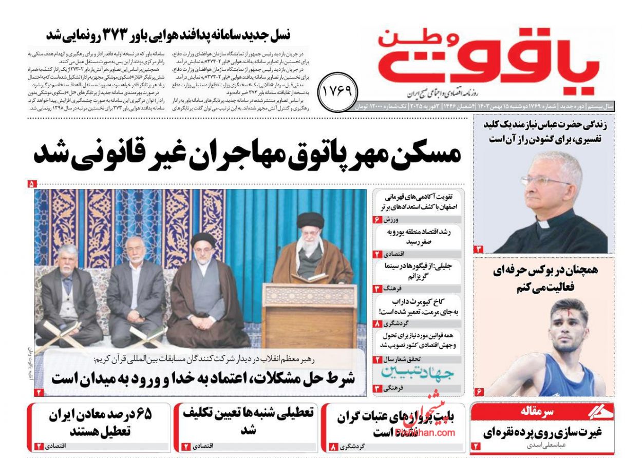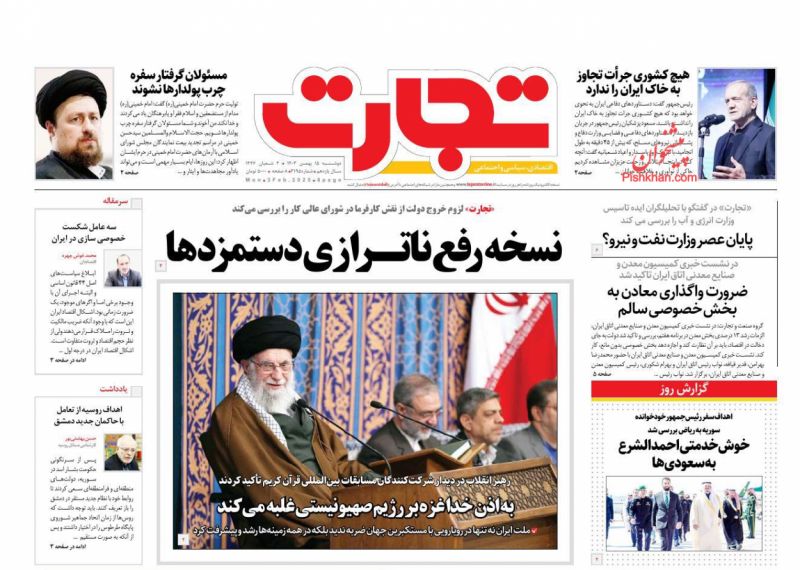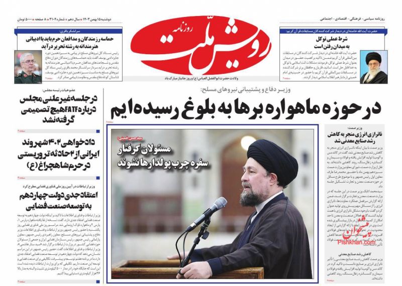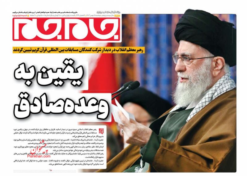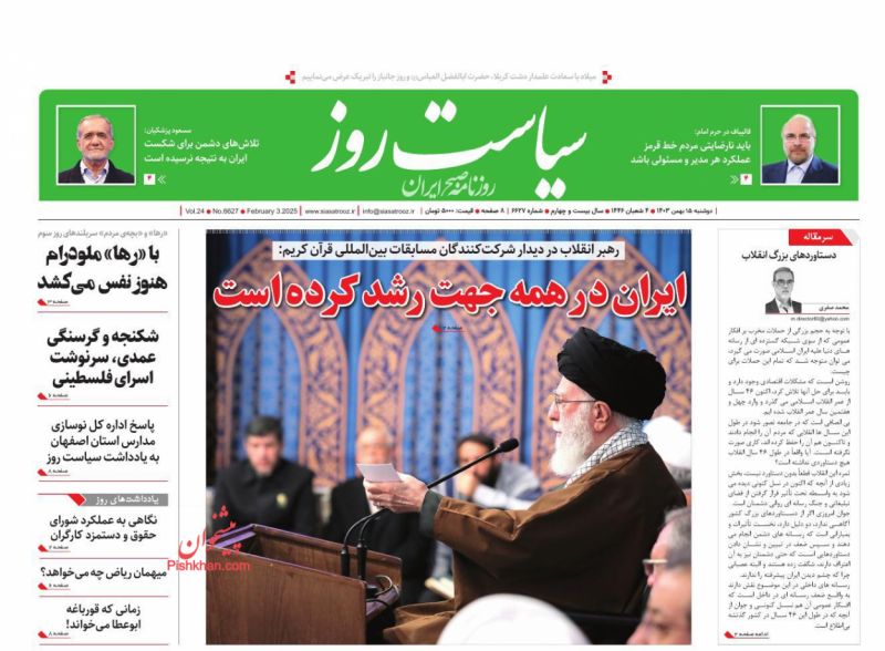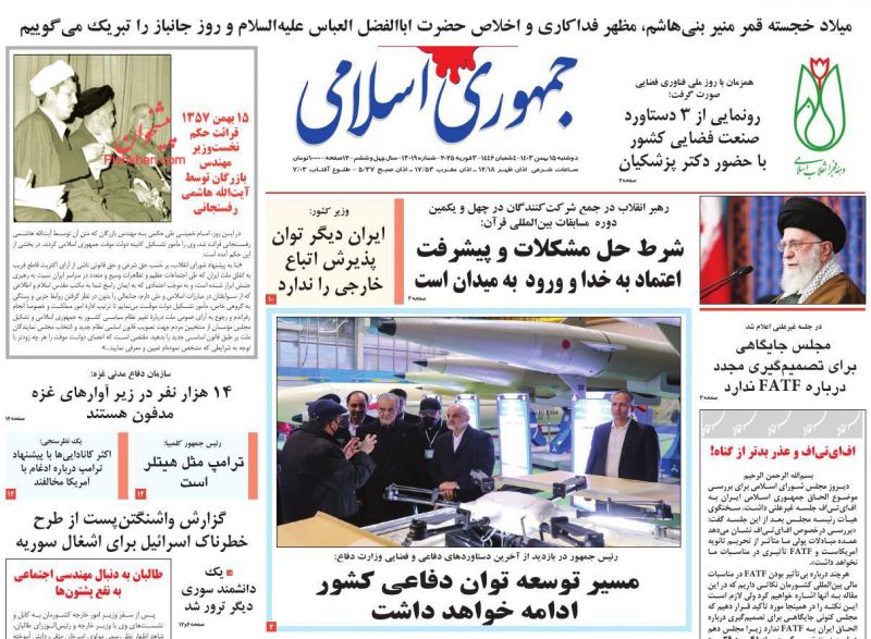 جمهوری اسلامی ، دوشنبه ۱۵ بهمن