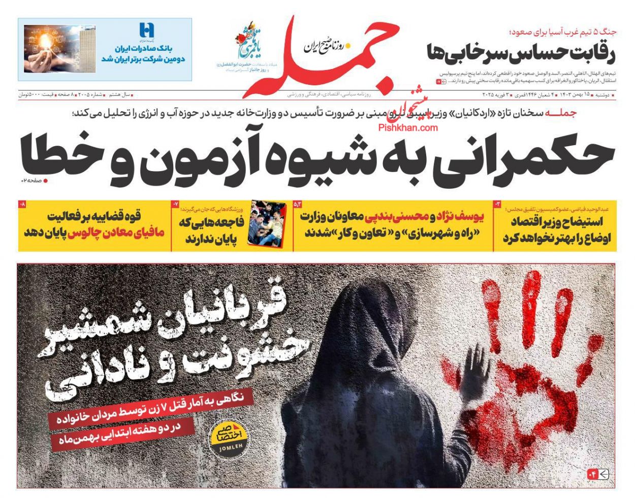 جام جم ، دوشنبه ۱۵ بهمن