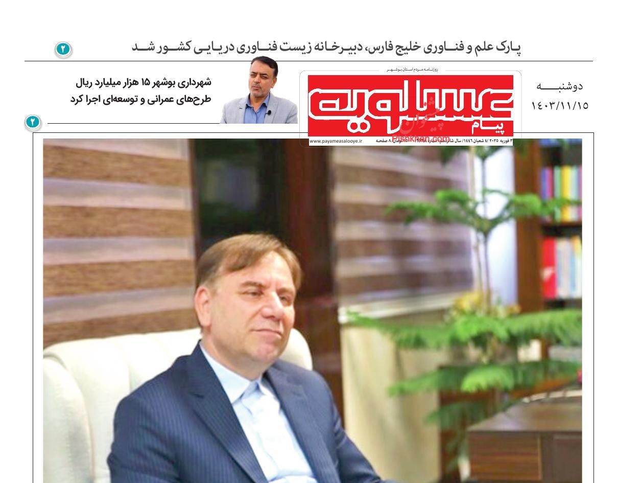 پیام عسلویه ، دوشنبه ۱۵ بهمن