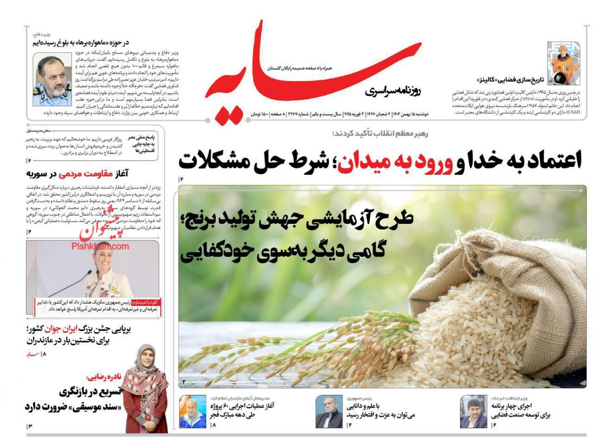 صبح امروز ، دوشنبه ۱۵ بهمن