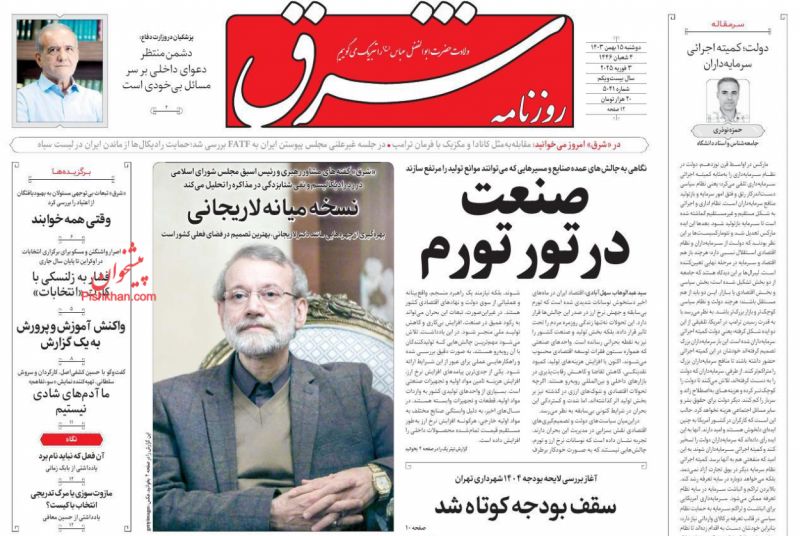 شرق ، دوشنبه ۱۵ بهمن