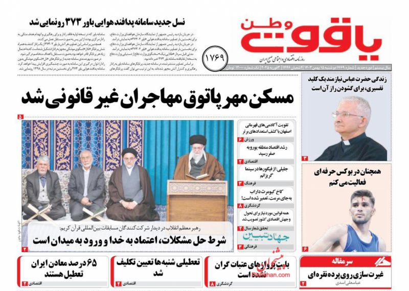 عصر ایرانیان ، یکشنبه ۱۴ بهمن