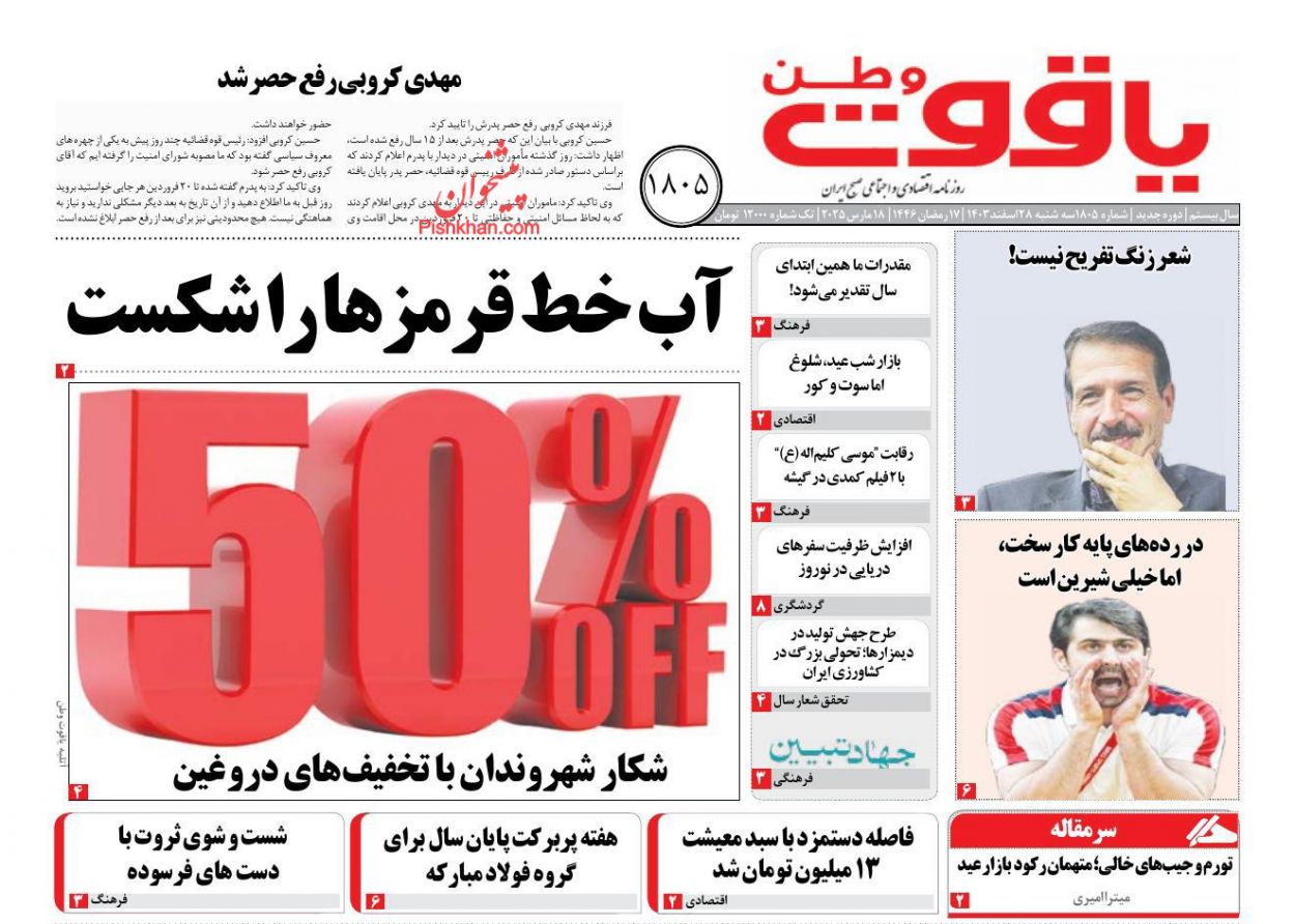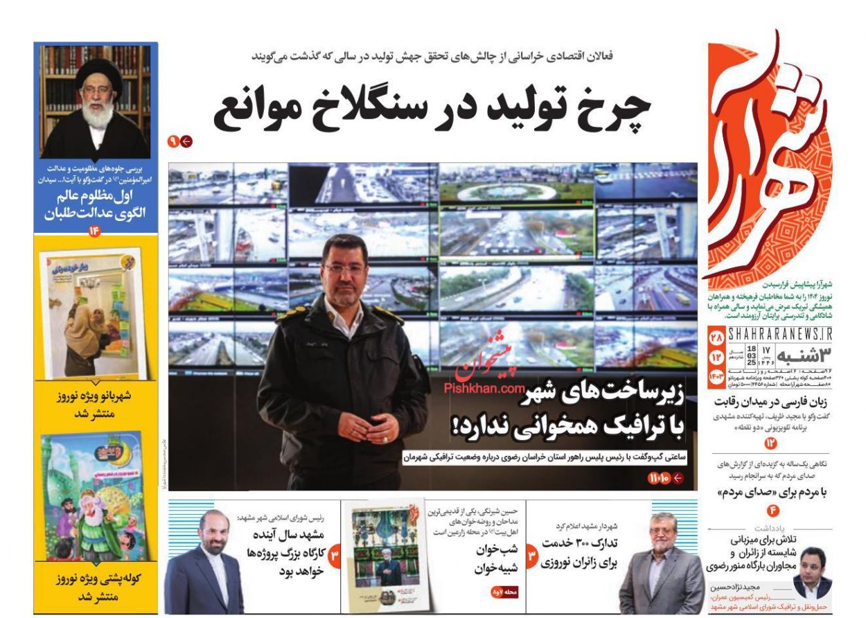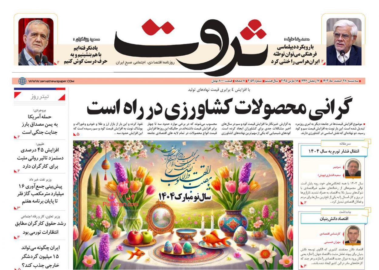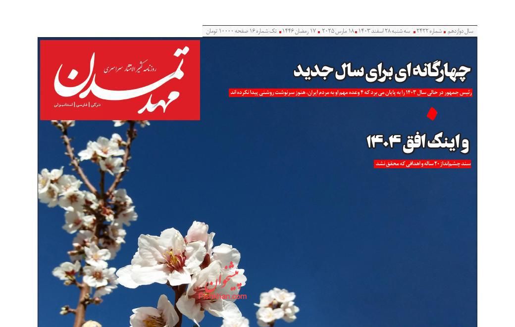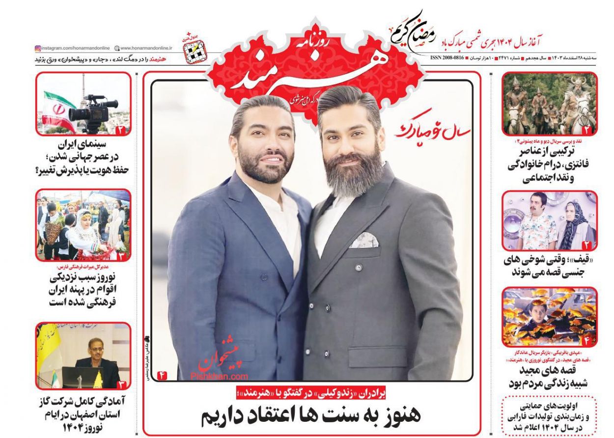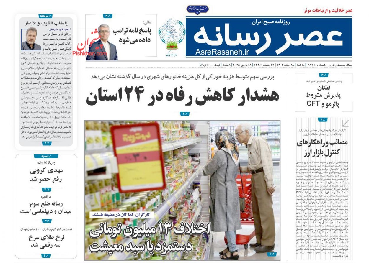 عصر ایرانیان ، سهشنبه ۲۸ اسفند
