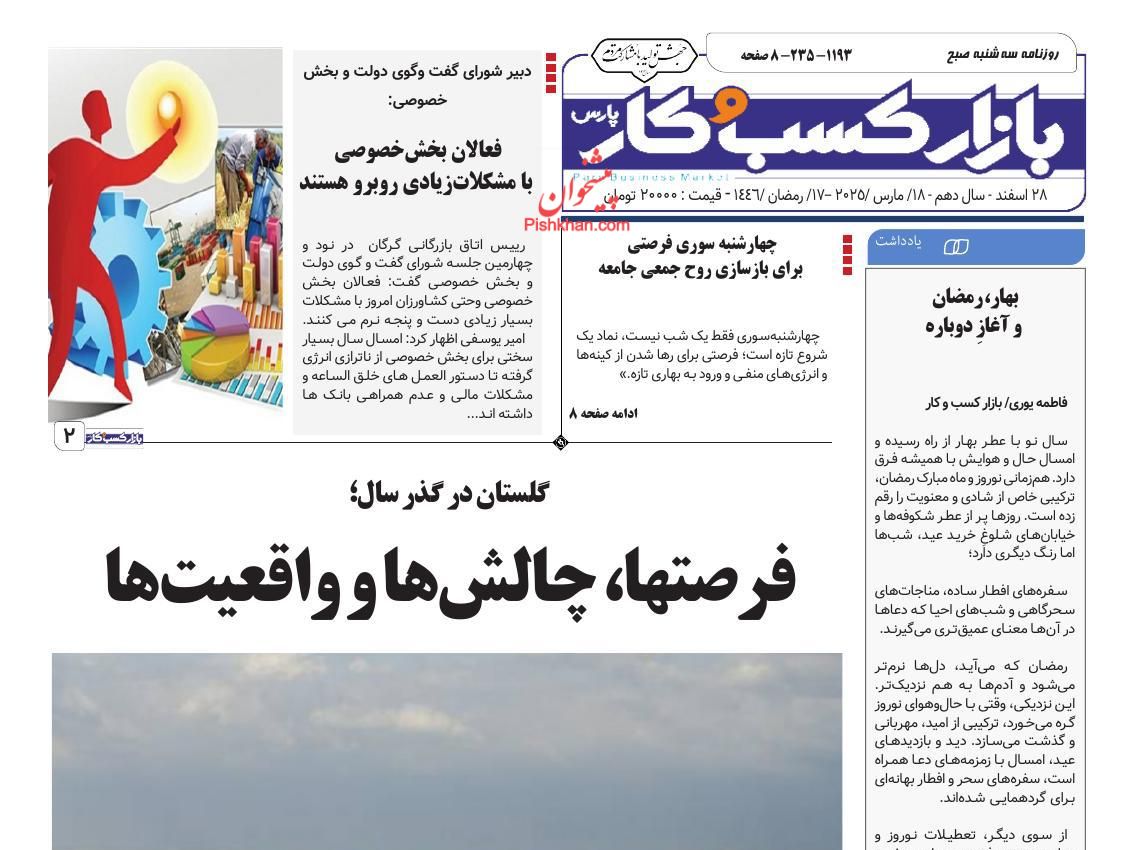 بازار کسب و کار ، سهشنبه ۲۸ اسفند