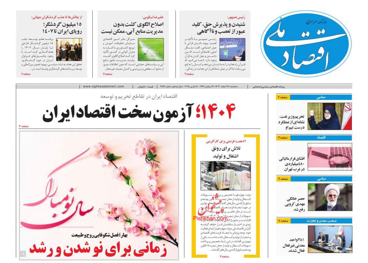 اقتصاد ملی ، سهشنبه ۲۸ اسفند