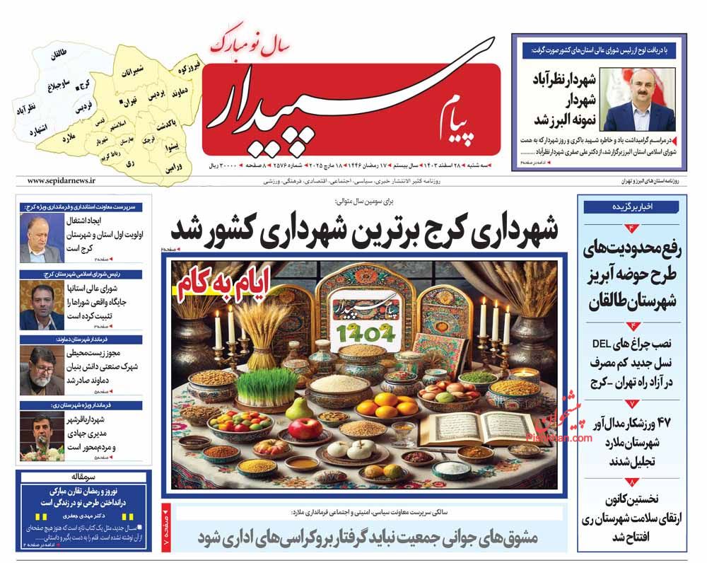 پیام سپیدار ، سهشنبه ۲۸ اسفند