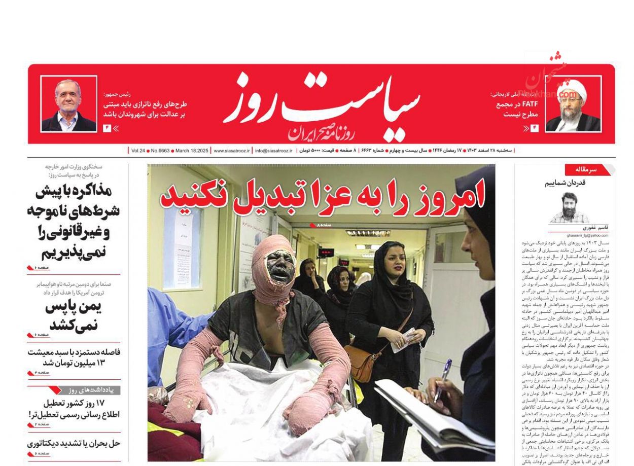 جمهوری اسلامی ، سهشنبه ۲۸ اسفند