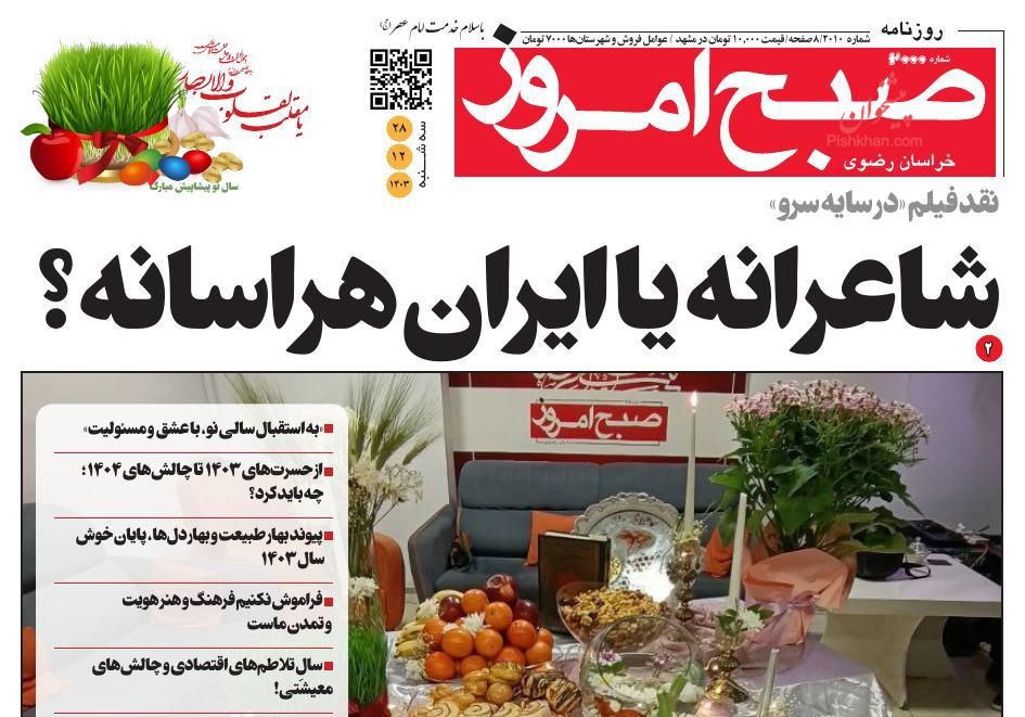 صبح امروز ، سهشنبه ۲۸ اسفند