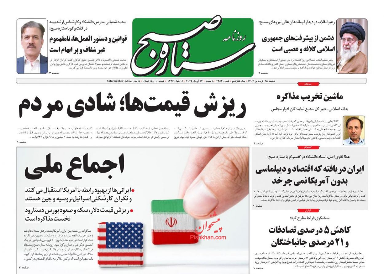 صبح امروز ، دوشنبه ۲۵ فروردين